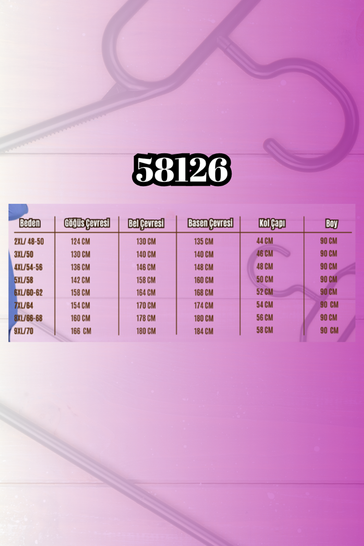 BEL GENİŞLİĞİ :88 cm GÖĞÜS GENİŞLİĞİ :103 cm BASEN :116 cm