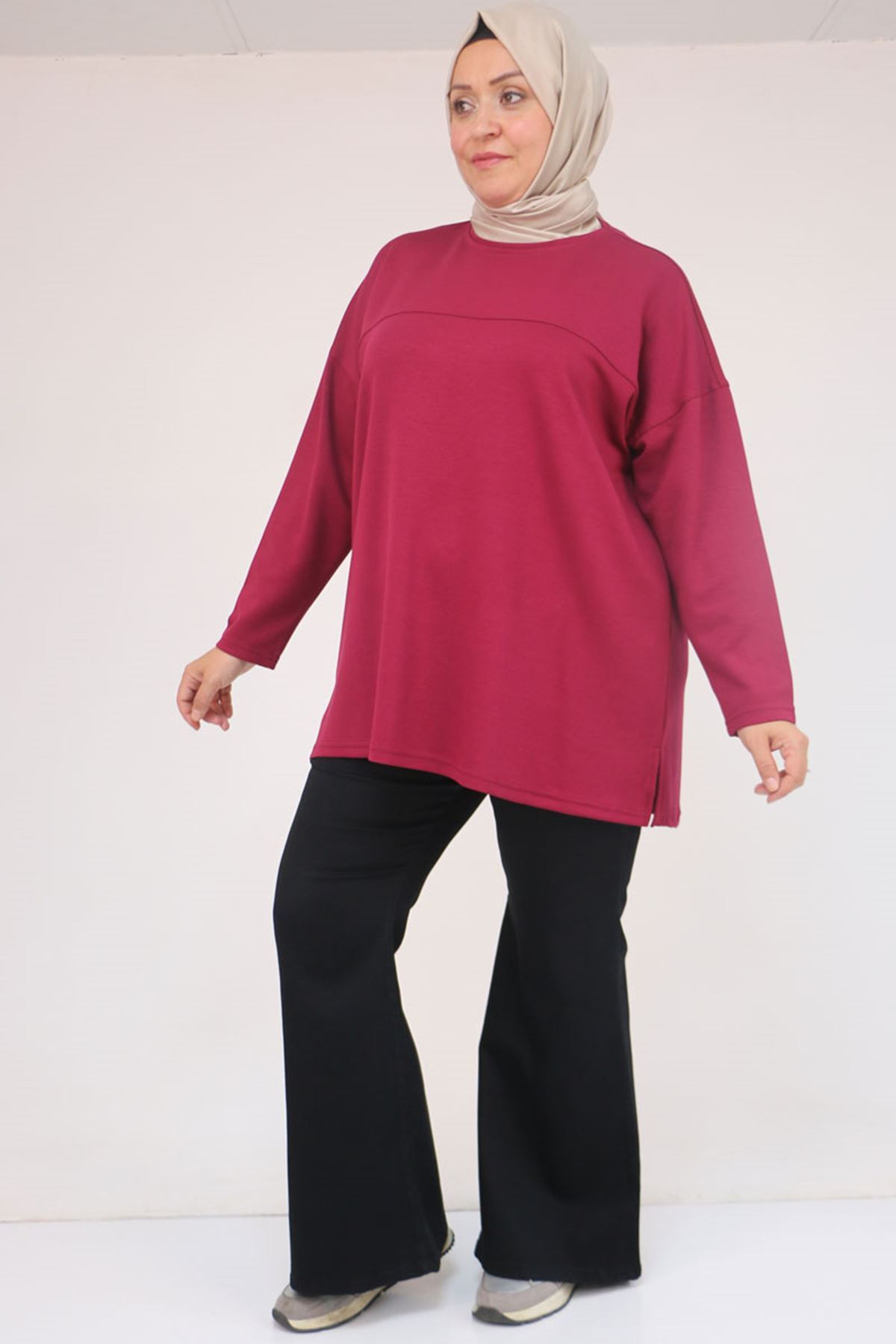 58132 Büyük Beden Önü Çıma Detaylı Yanı Yırtmaçlı Modal Tunik - Bordo