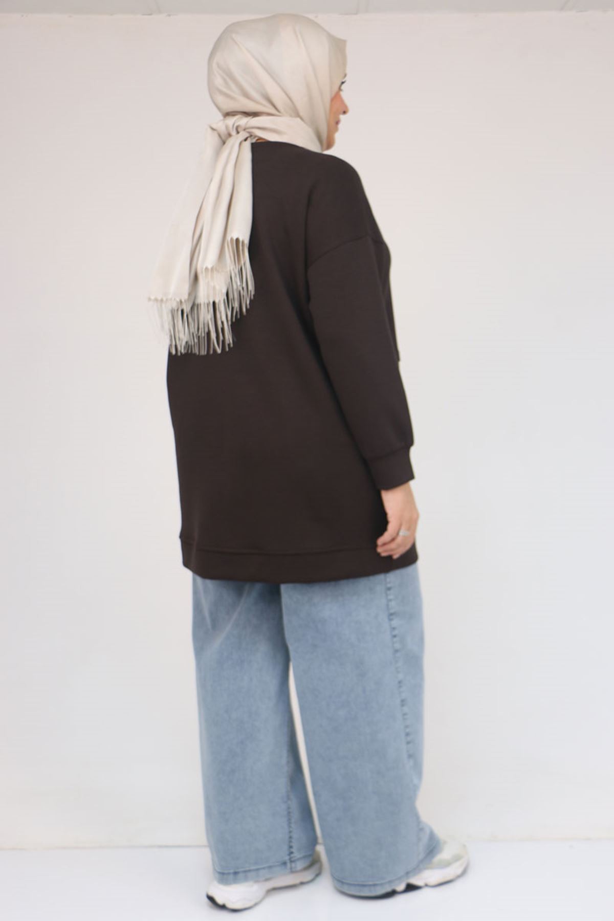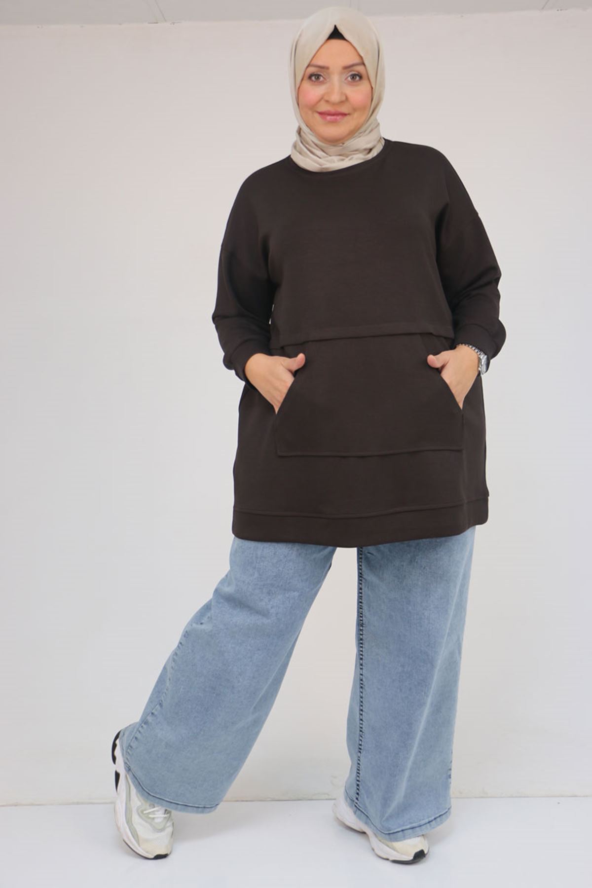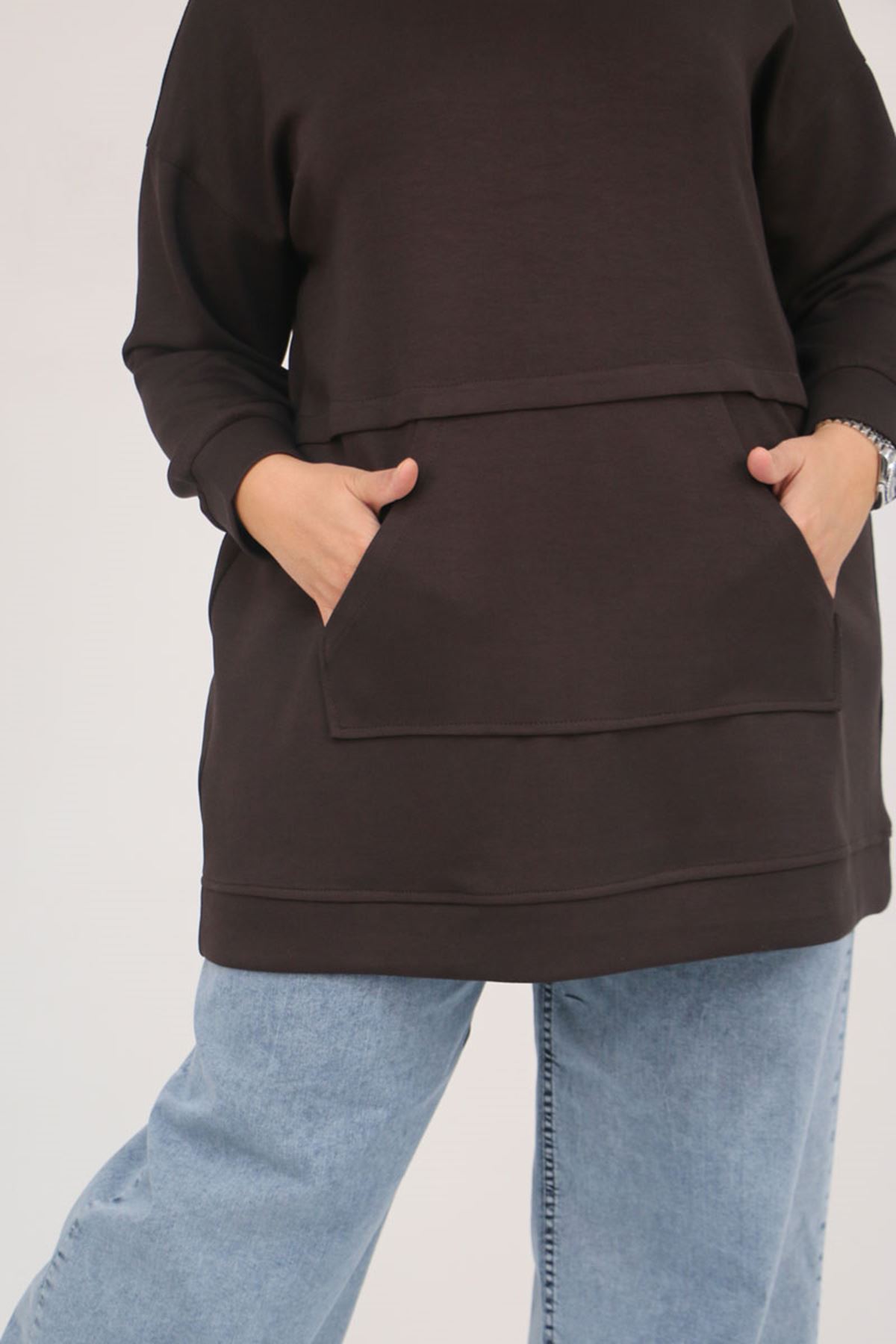 58133 Büyük Beden Kanguru Cepli Modal Tunik - Kahve