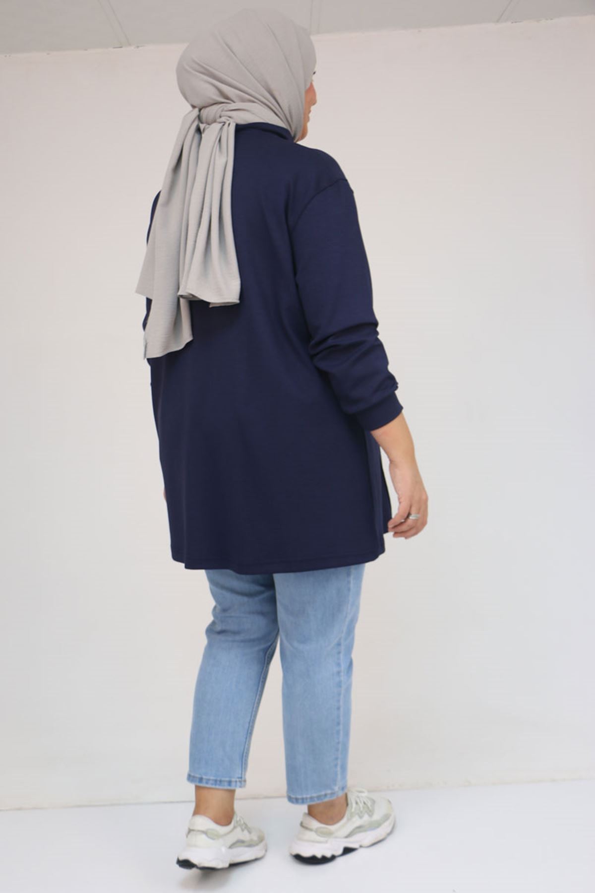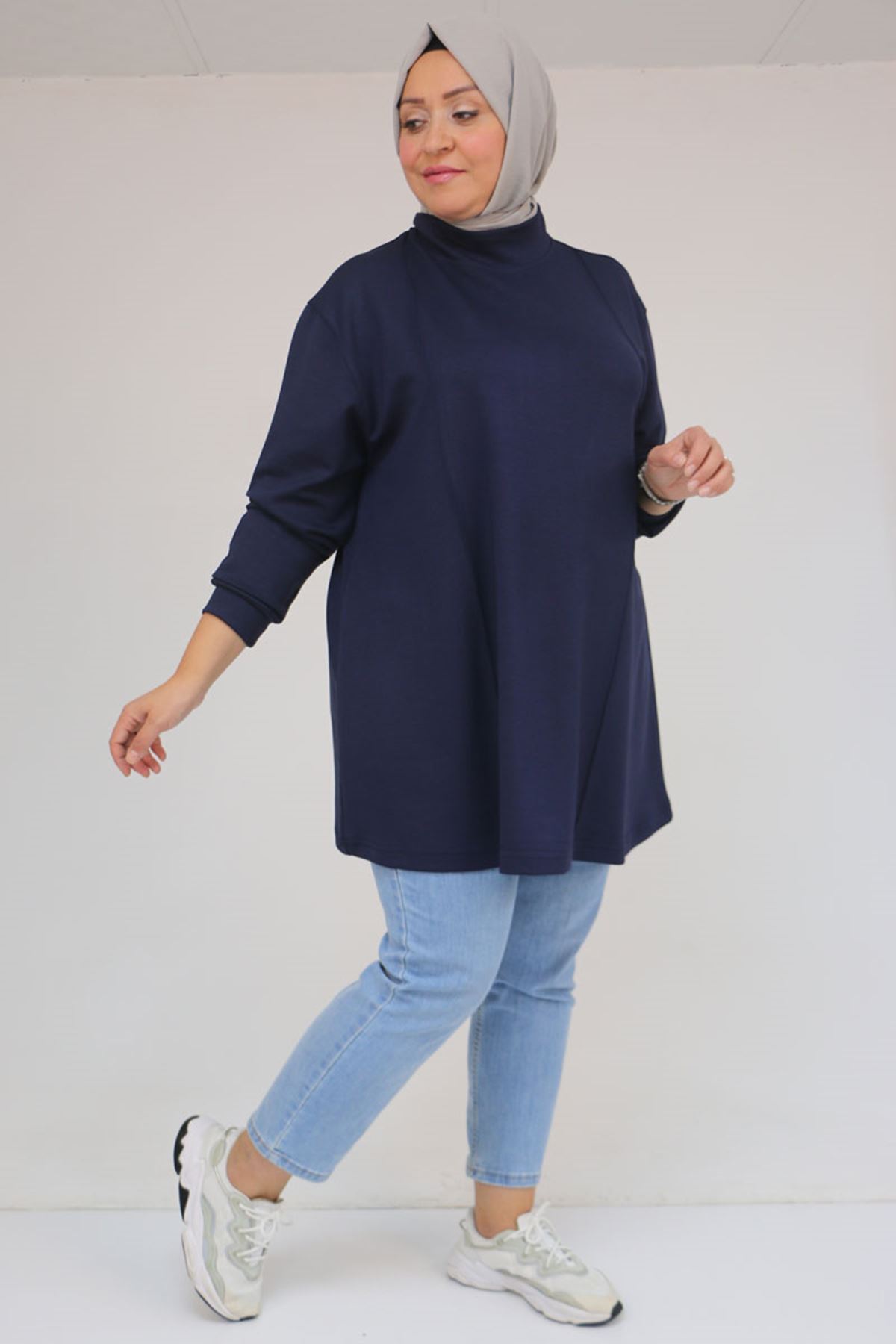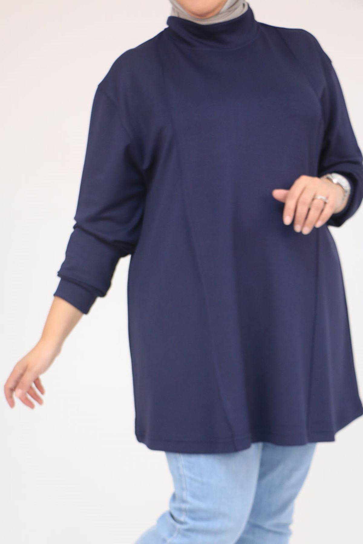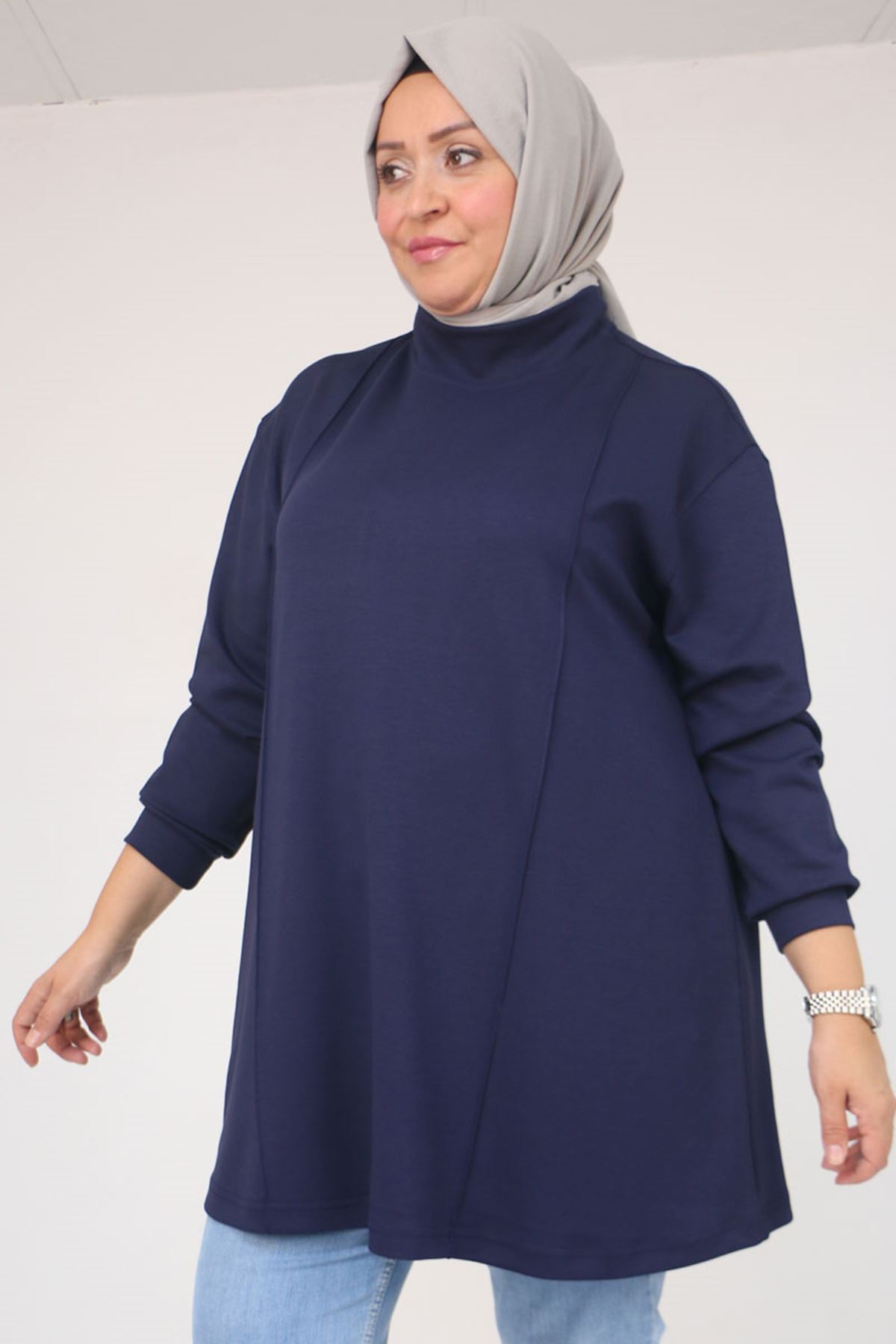 58134 Büyük Beden Boğazlı Yaka Modal Tunik - Lacivert