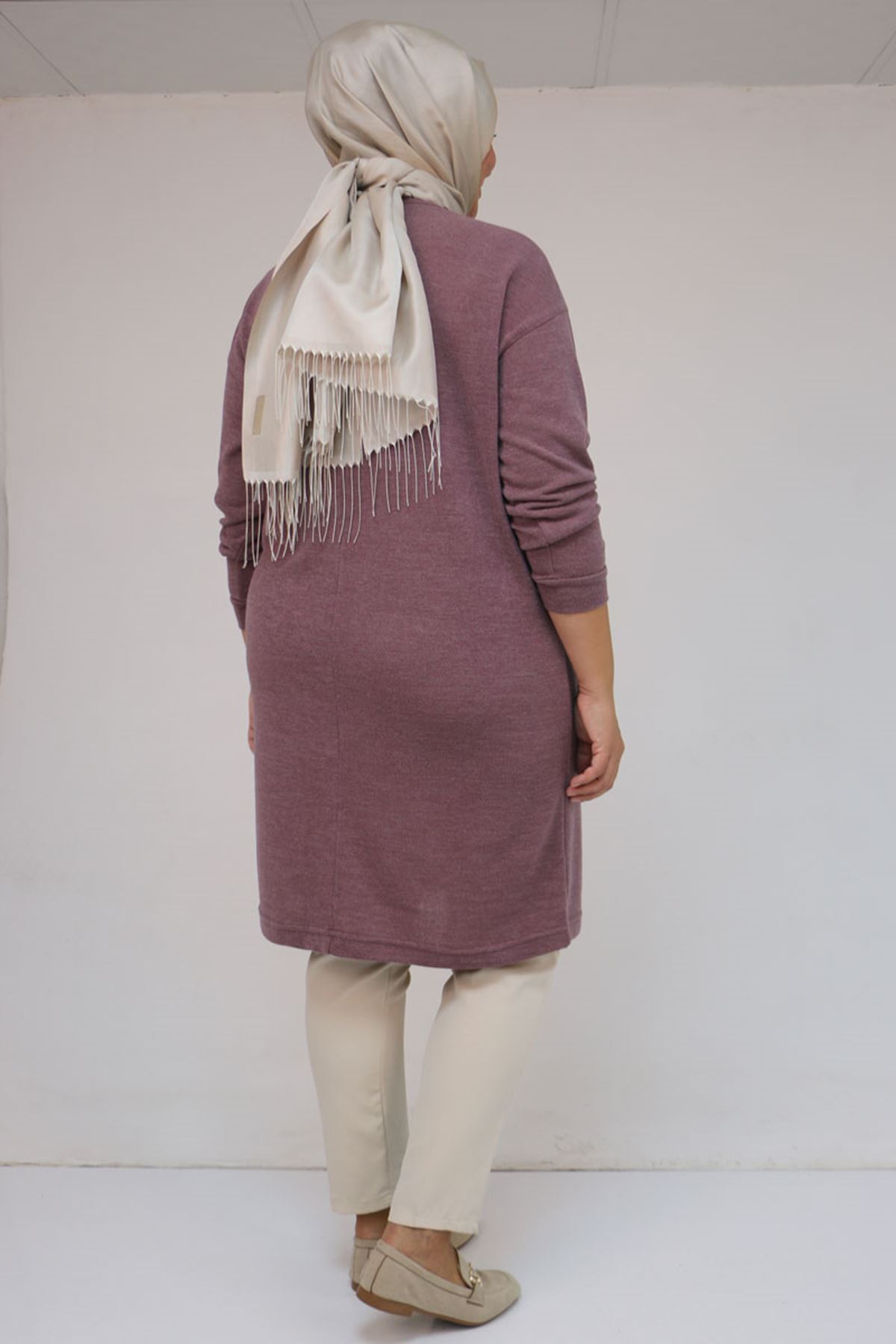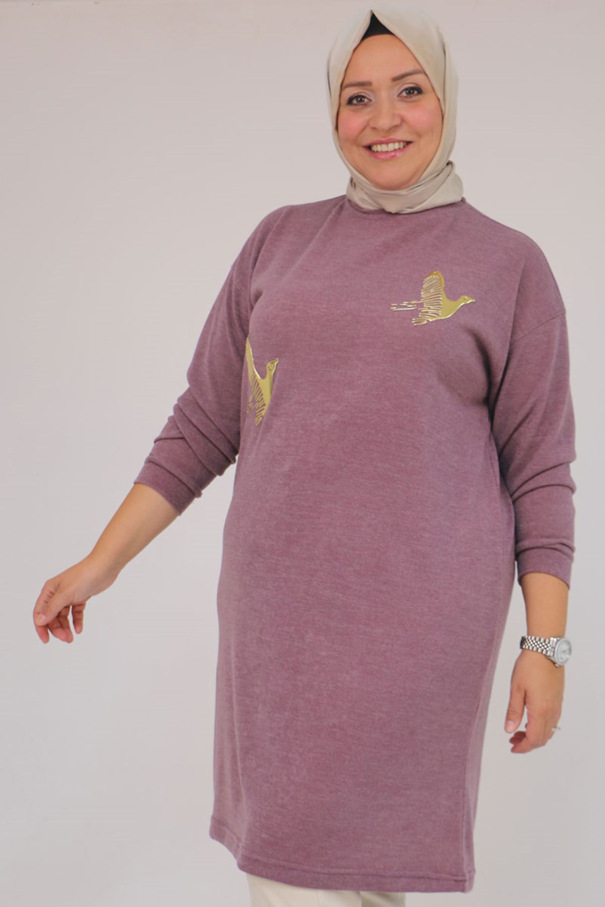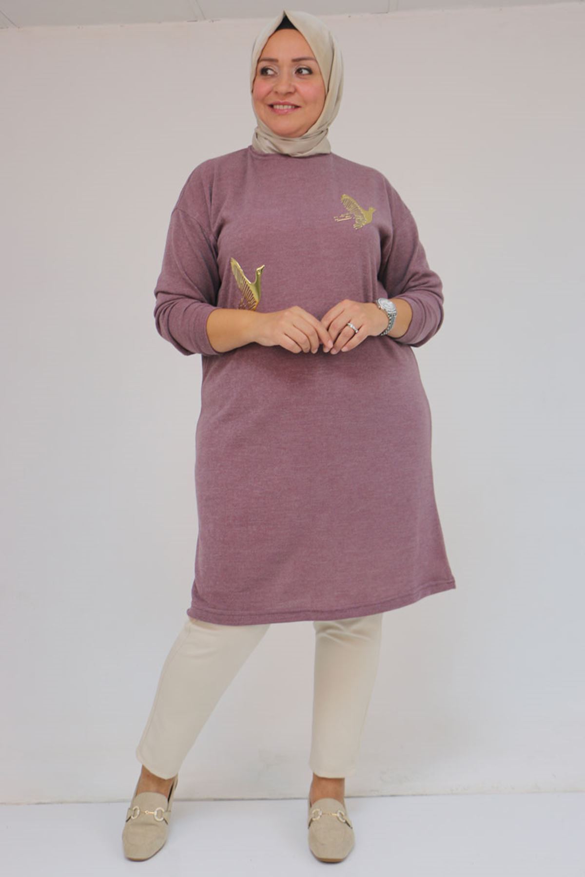 58143 Büyük Beden Düşük Kollu Aksesuar Detaylı Mir Tunik - Gül Kurusu