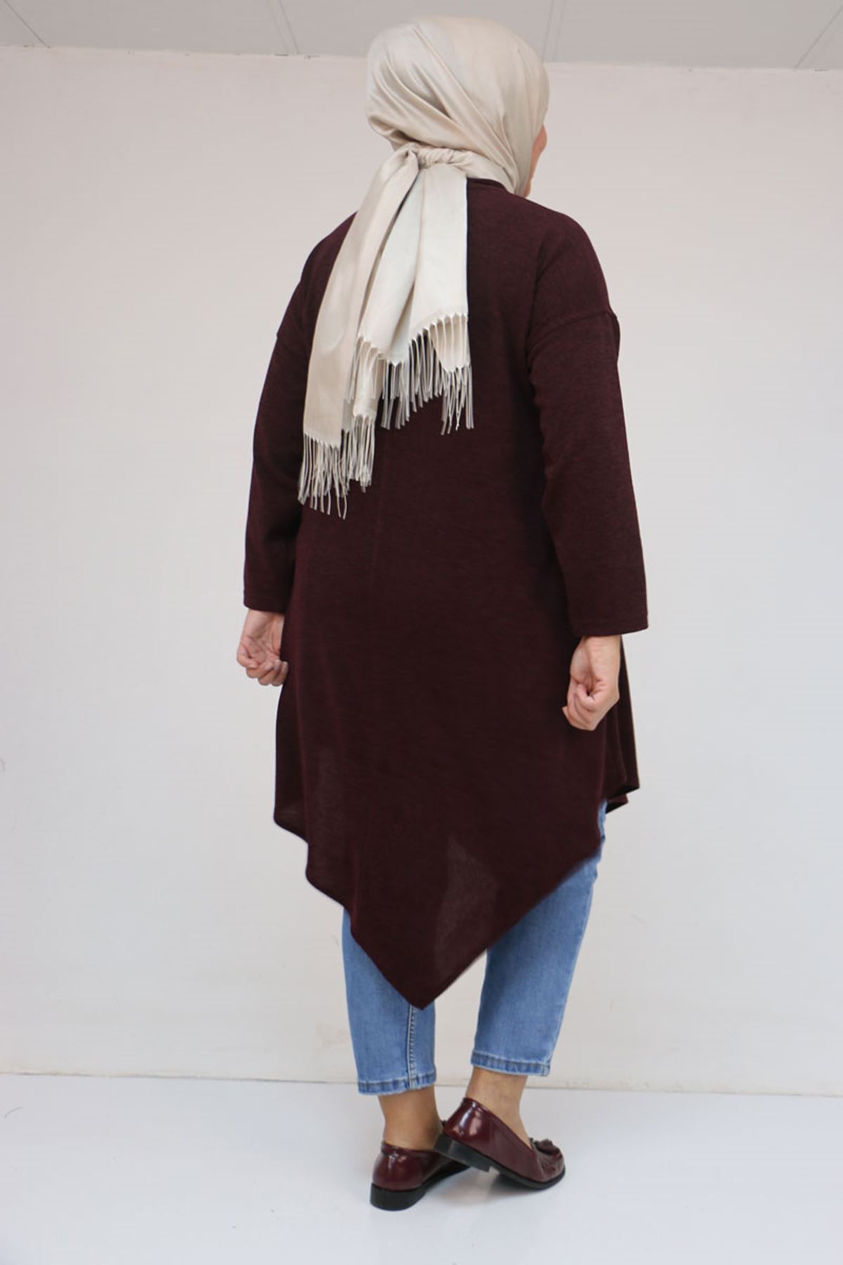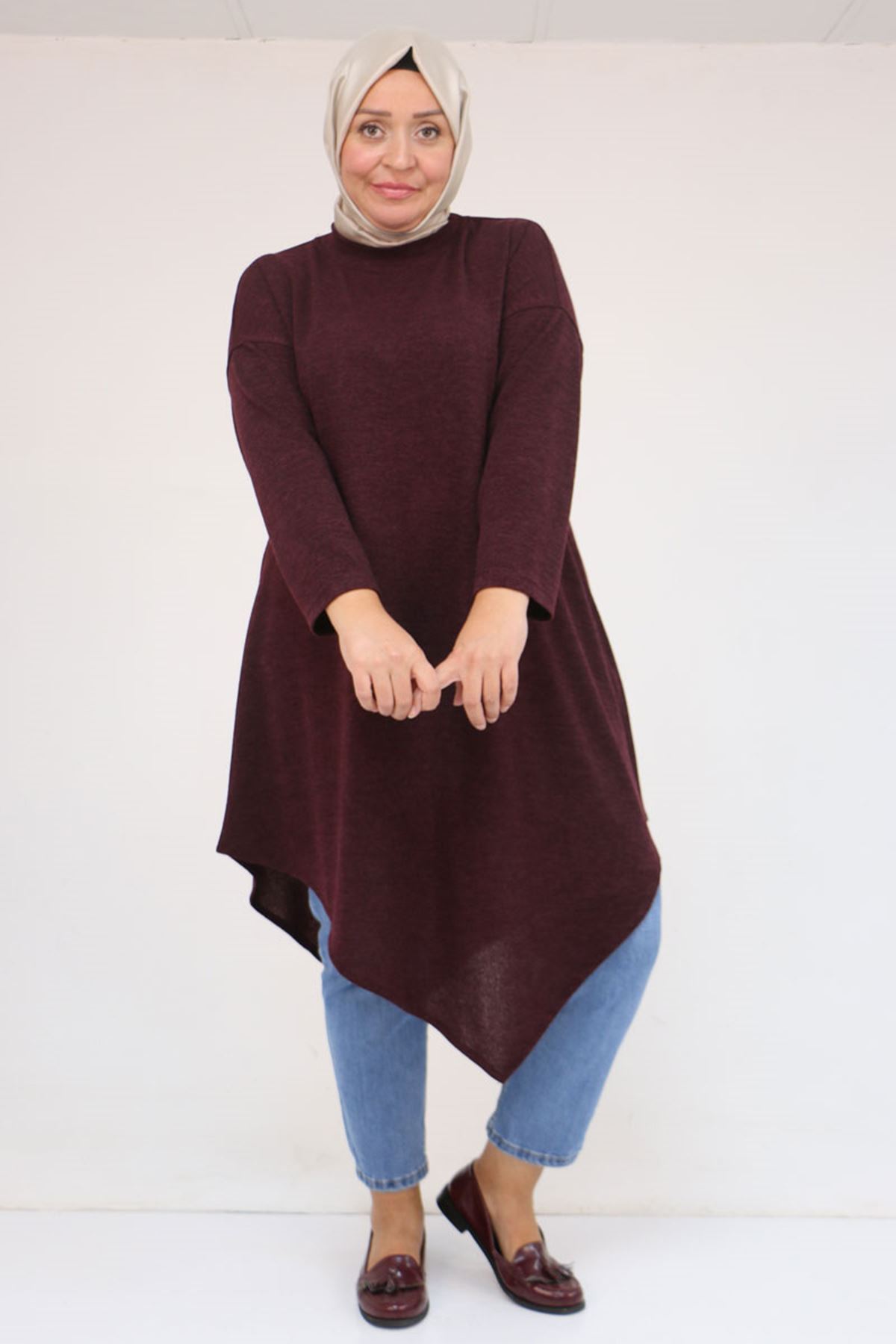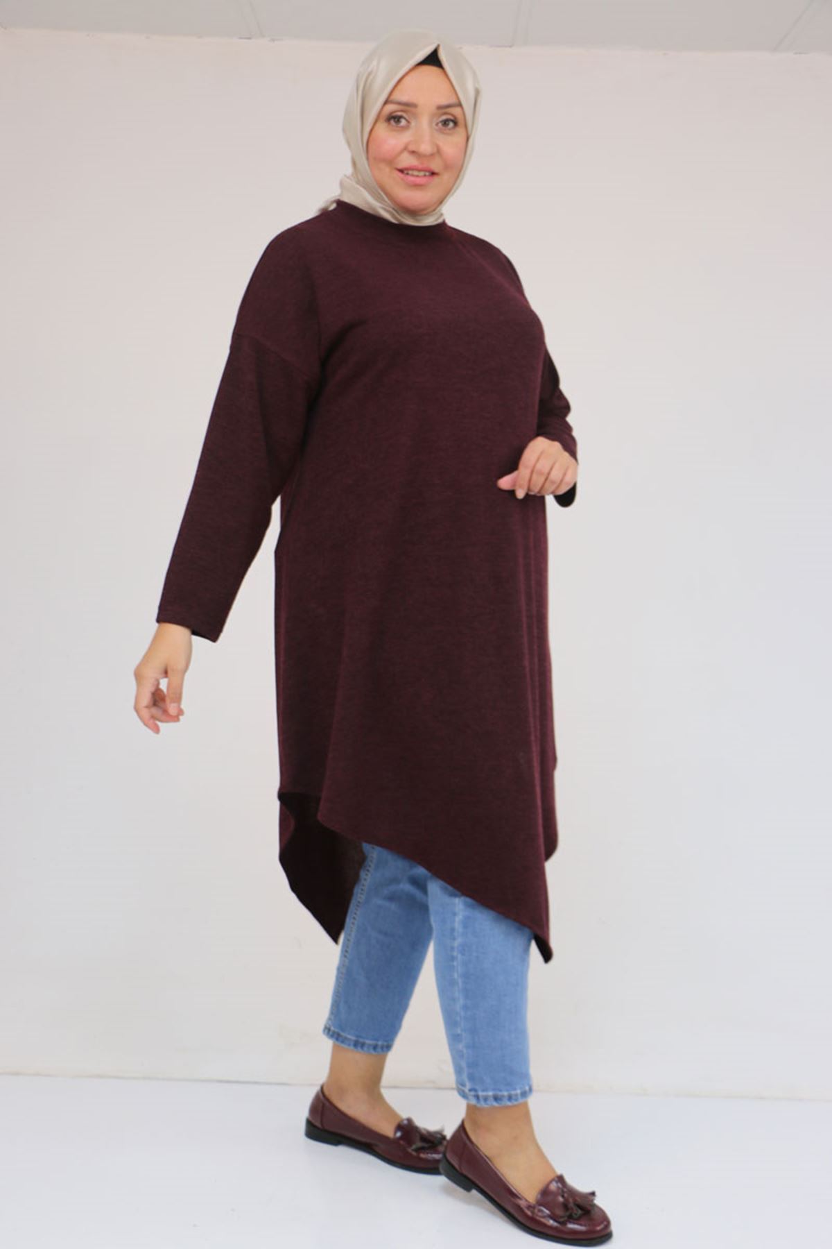 58144 Büyük Beden Hakim Yakalı Mir Tunik - Mürdüm