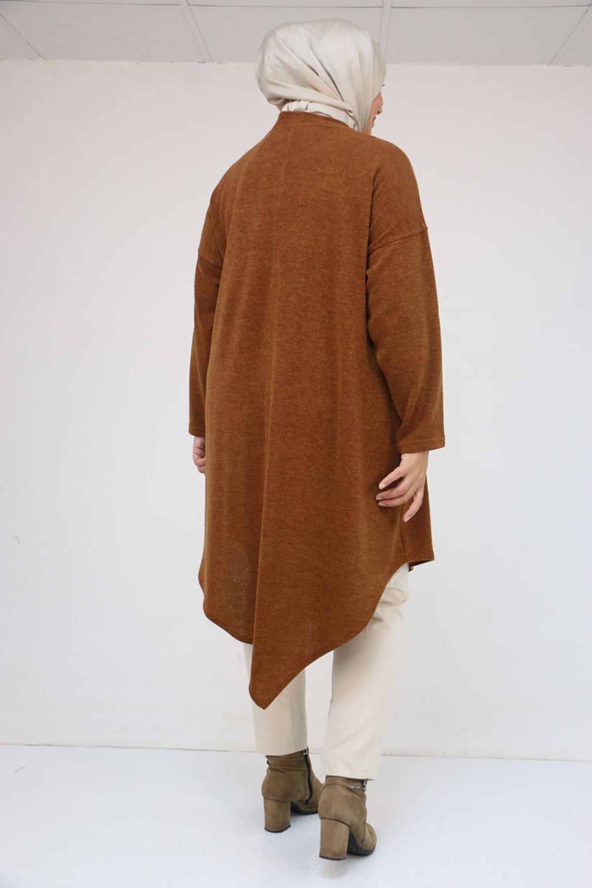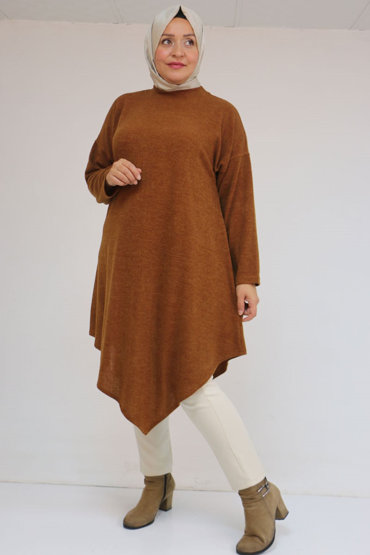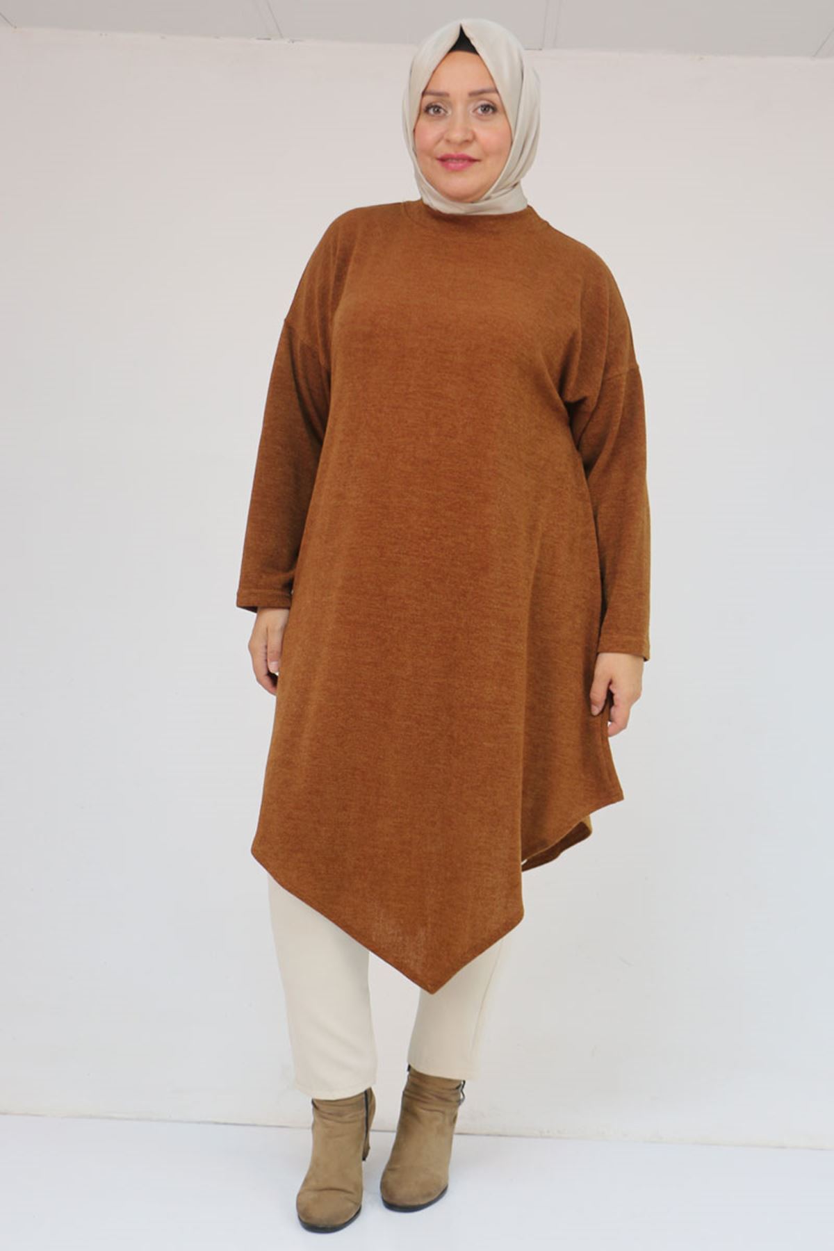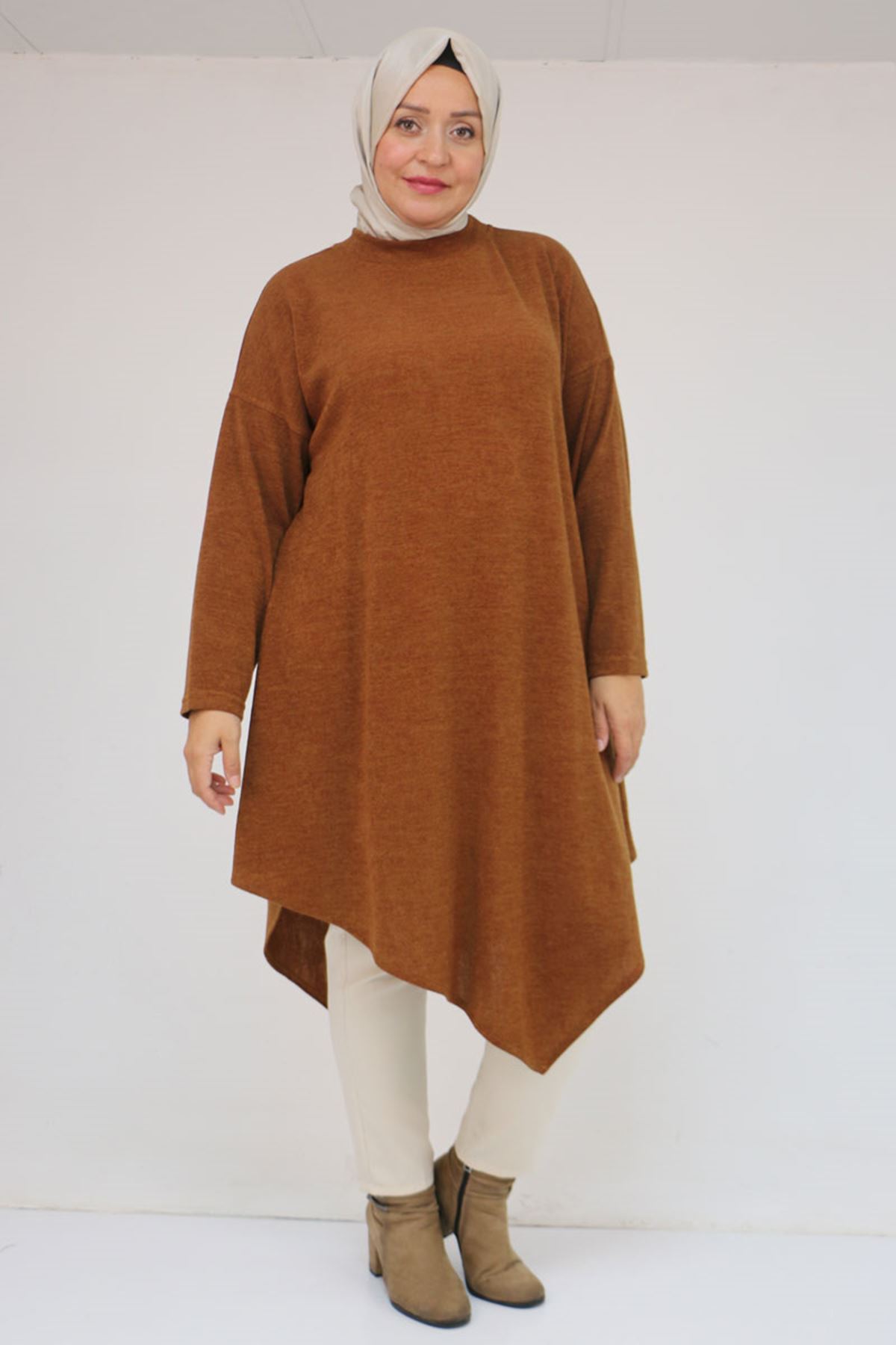58144 Büyük Beden Hakim Yakalı Mir Tunik - Taba