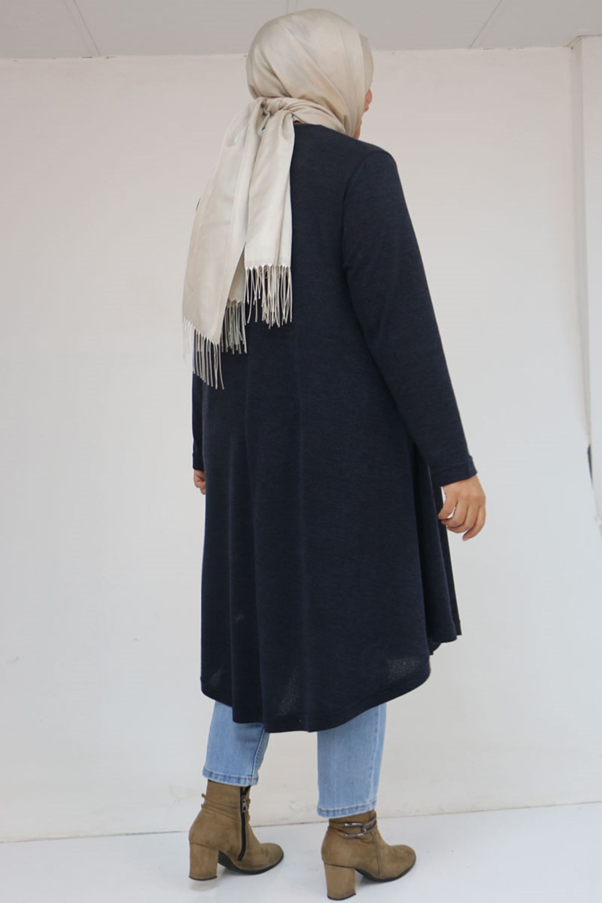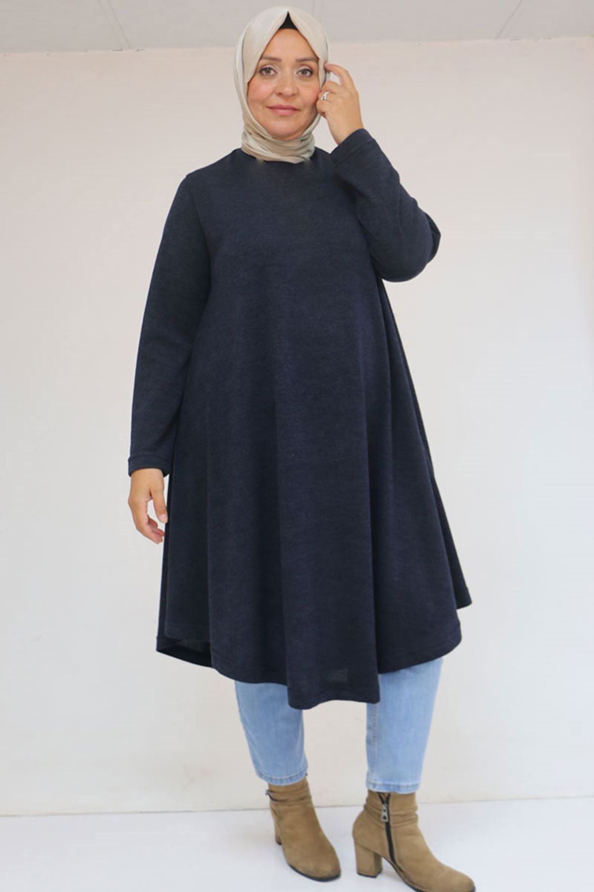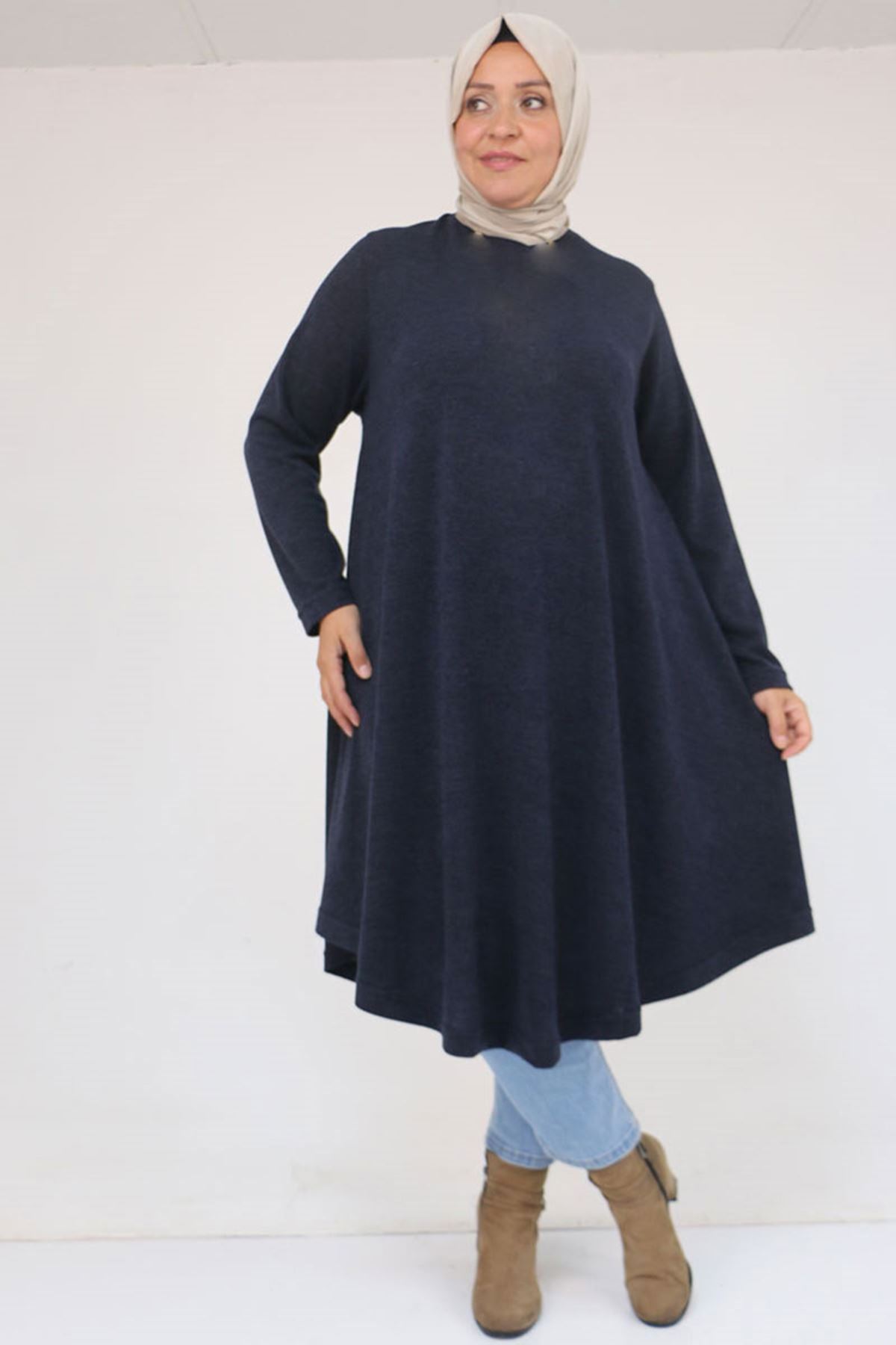 58147 Büyük Beden Mevlana Kesim Mir Tunik - Lacivert