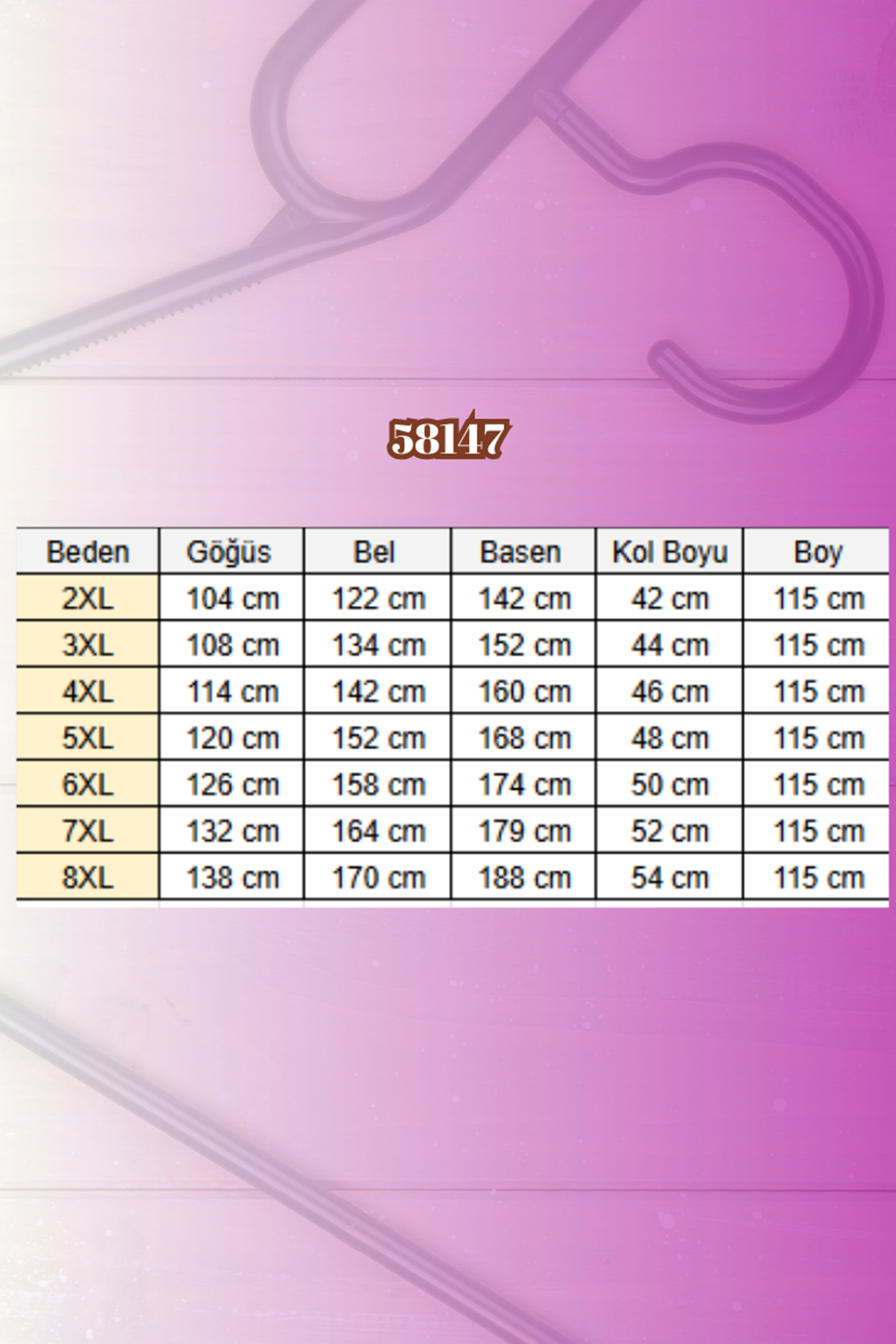 BEL GENİŞLİĞİ :88 cm GÖĞÜS GENİŞLİĞİ :103 cm BASEN :116 cm