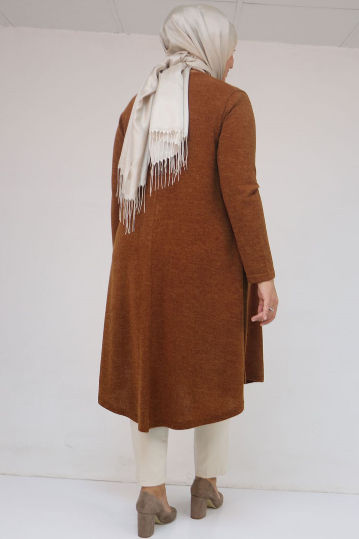 58147 Büyük Beden Mevlana Kesim Mir Tunik - Taba