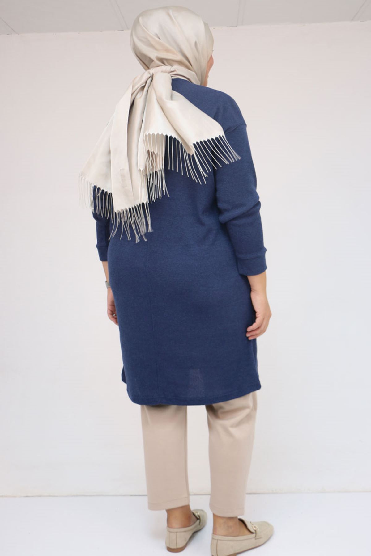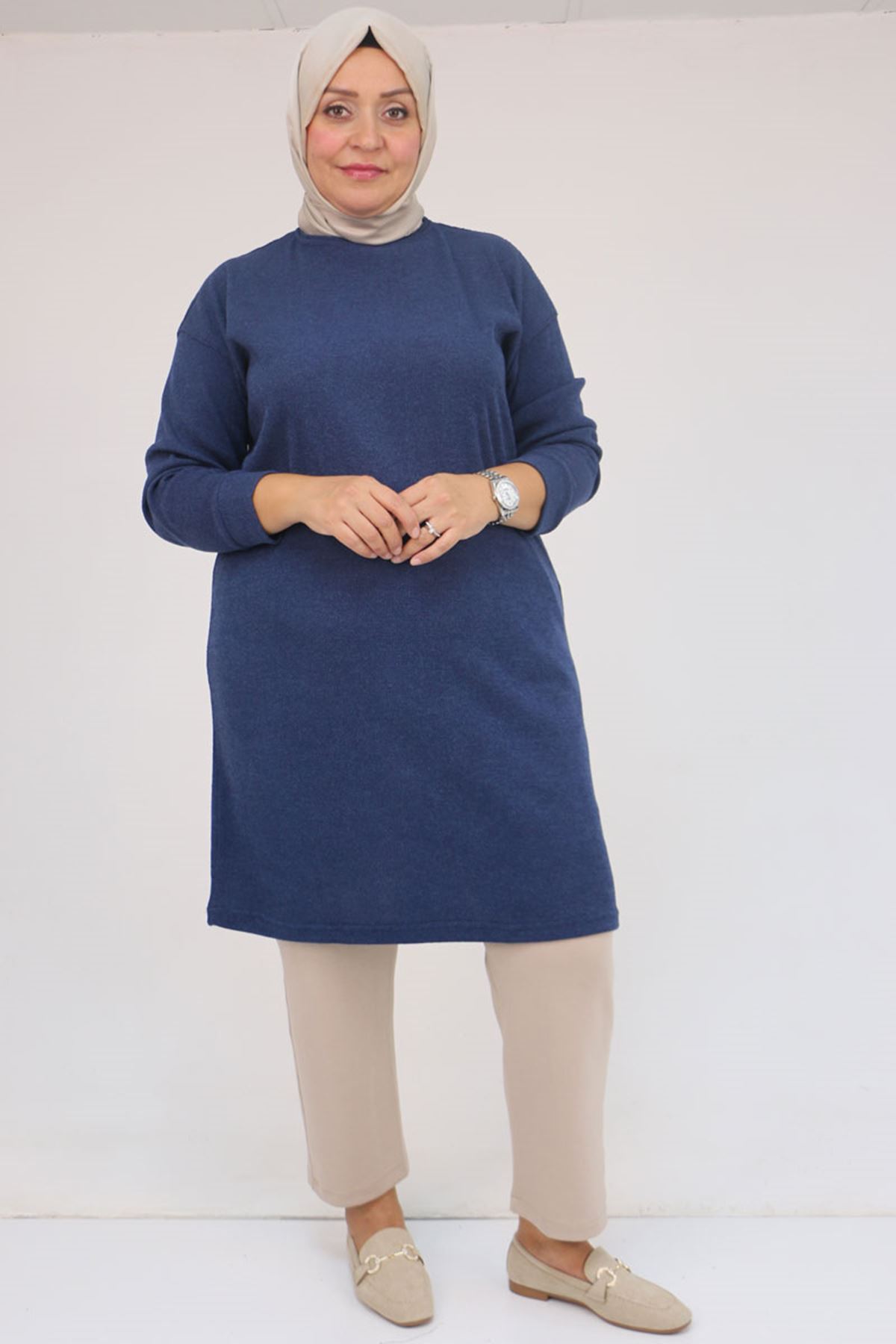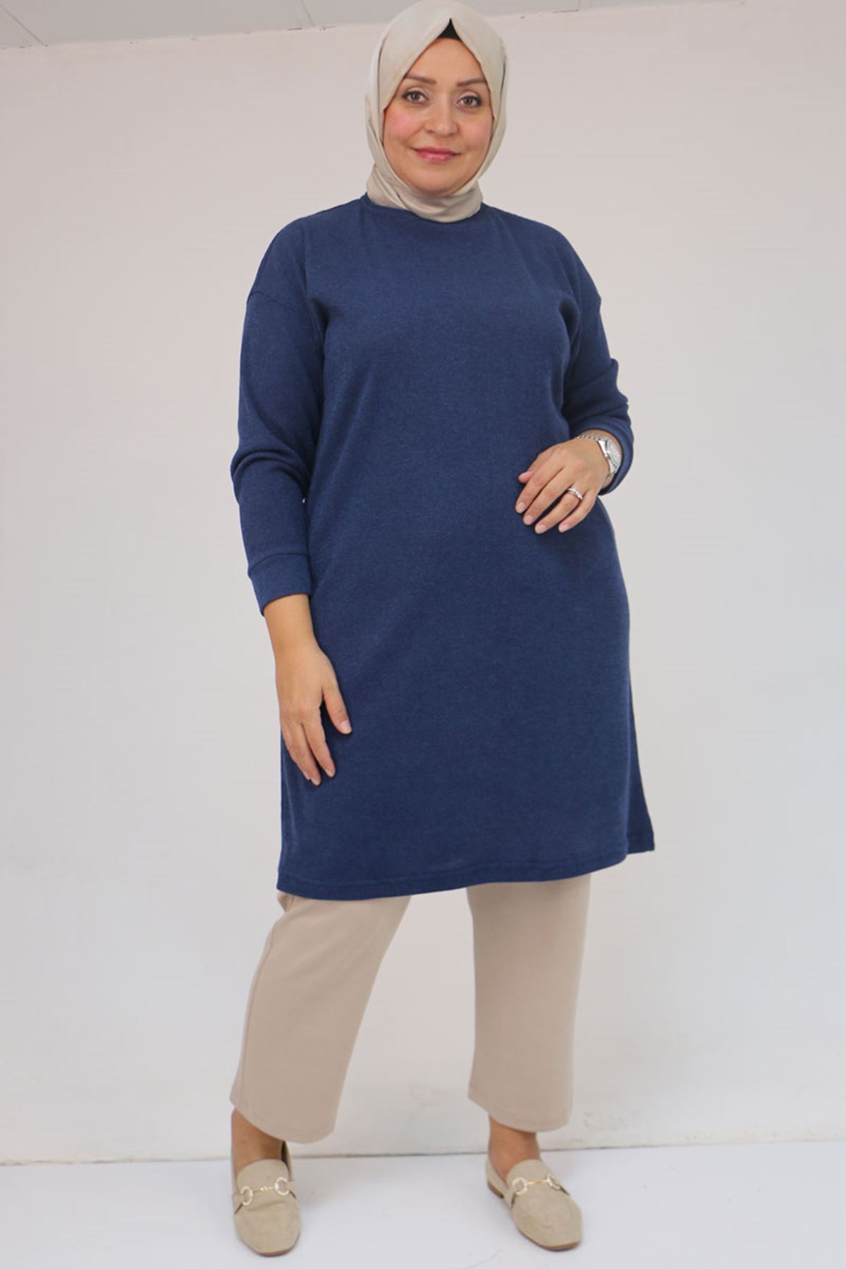 58148 Büyük Beden Düşük Kollu Mir Tunik - İndigo