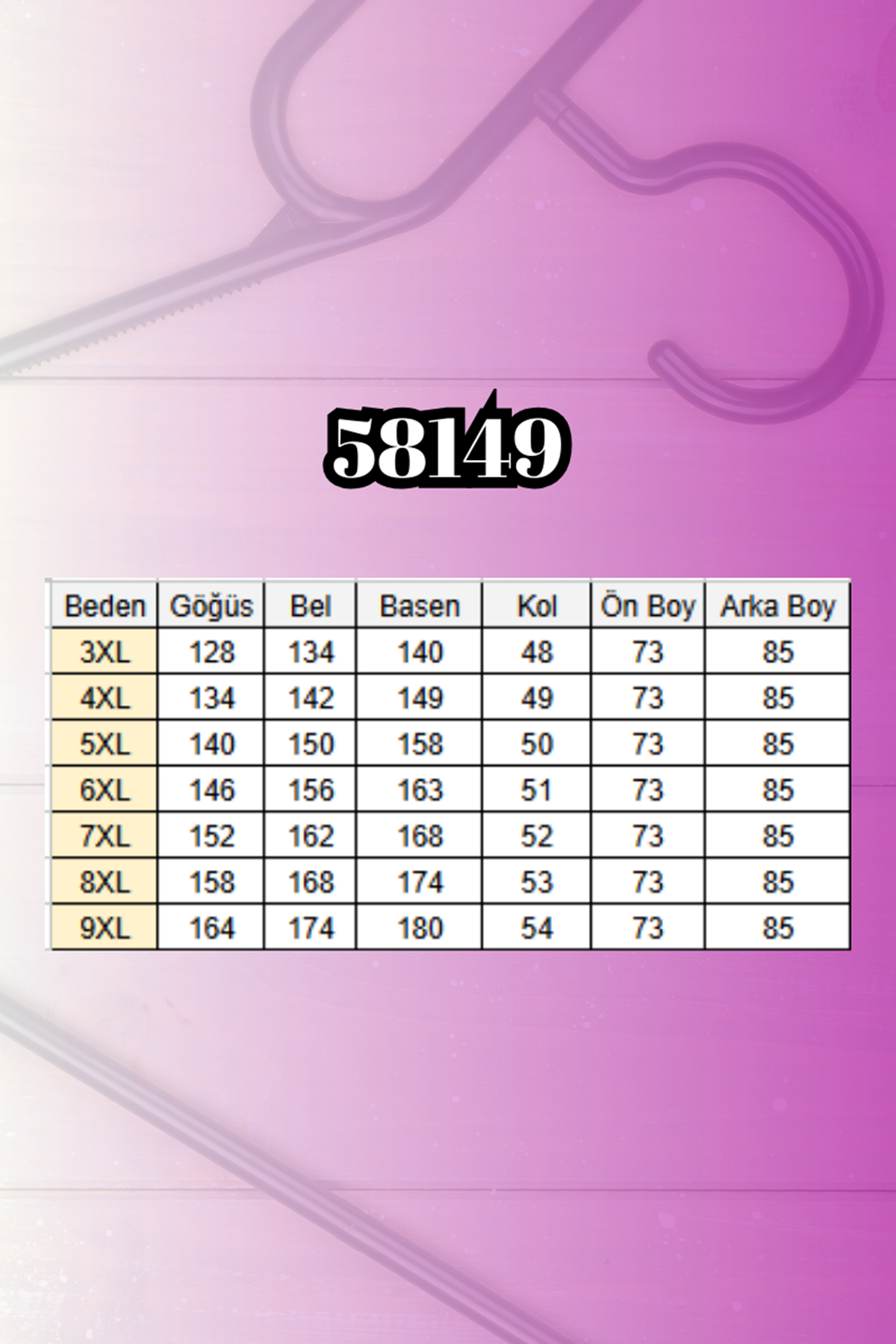 BEL GENİŞLİĞİ :88 cm GÖĞÜS GENİŞLİĞİ :103 cm BASEN :116 cm
