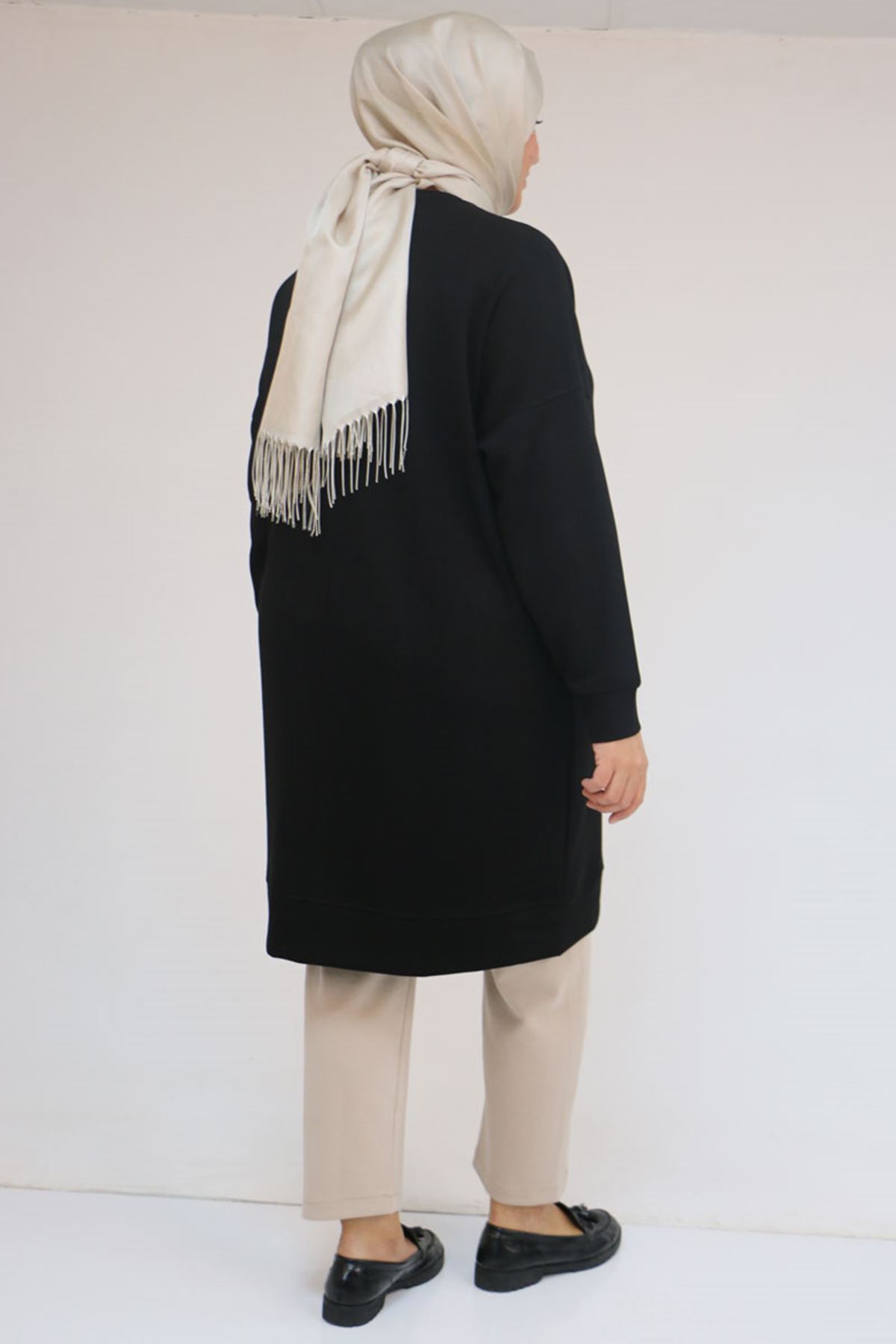 58151 Büyük Beden Kol Ve Etek Ucu Kendinden Ribanalı Modal Tunik - Siyah