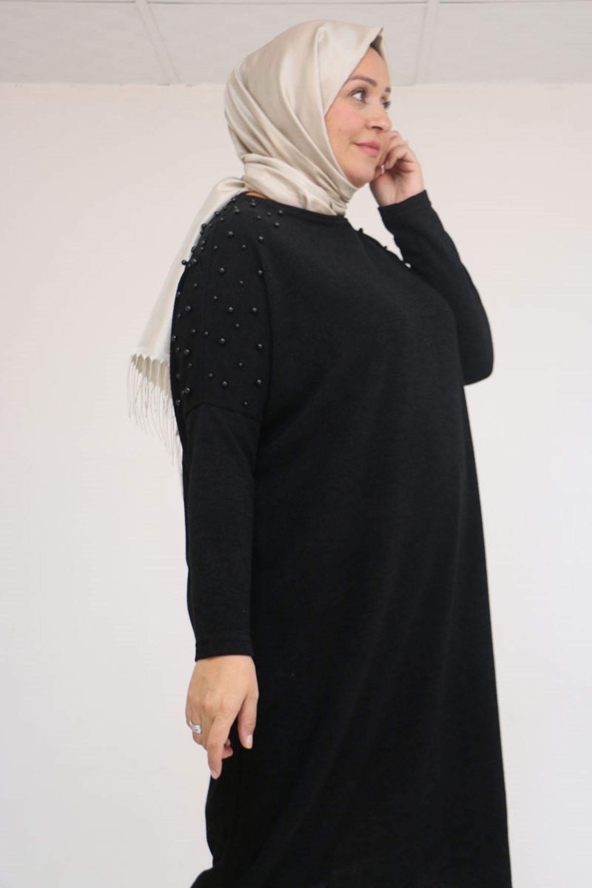 58152 Büyük Beden Düşükkol Omzu Taş Detaylı Mir Tunik - Siyah
