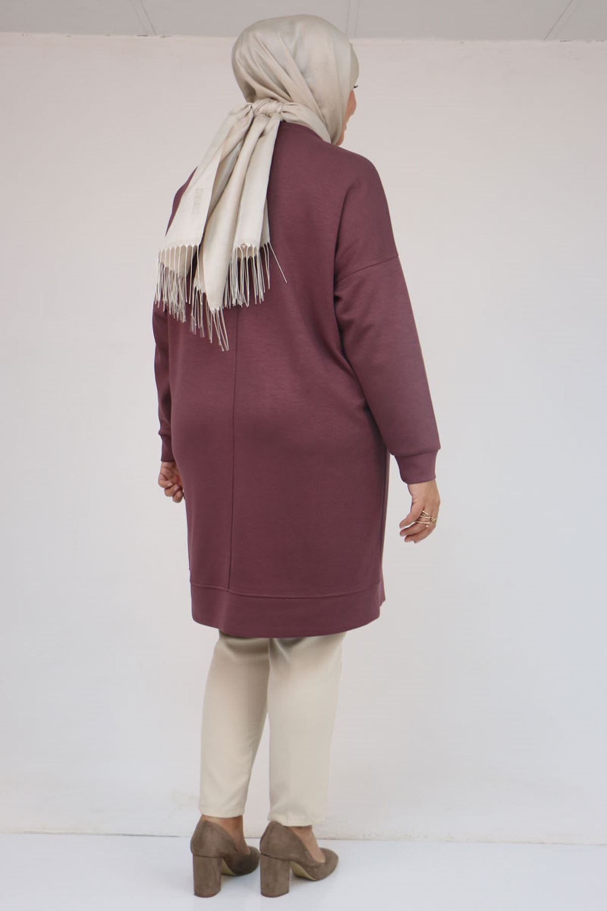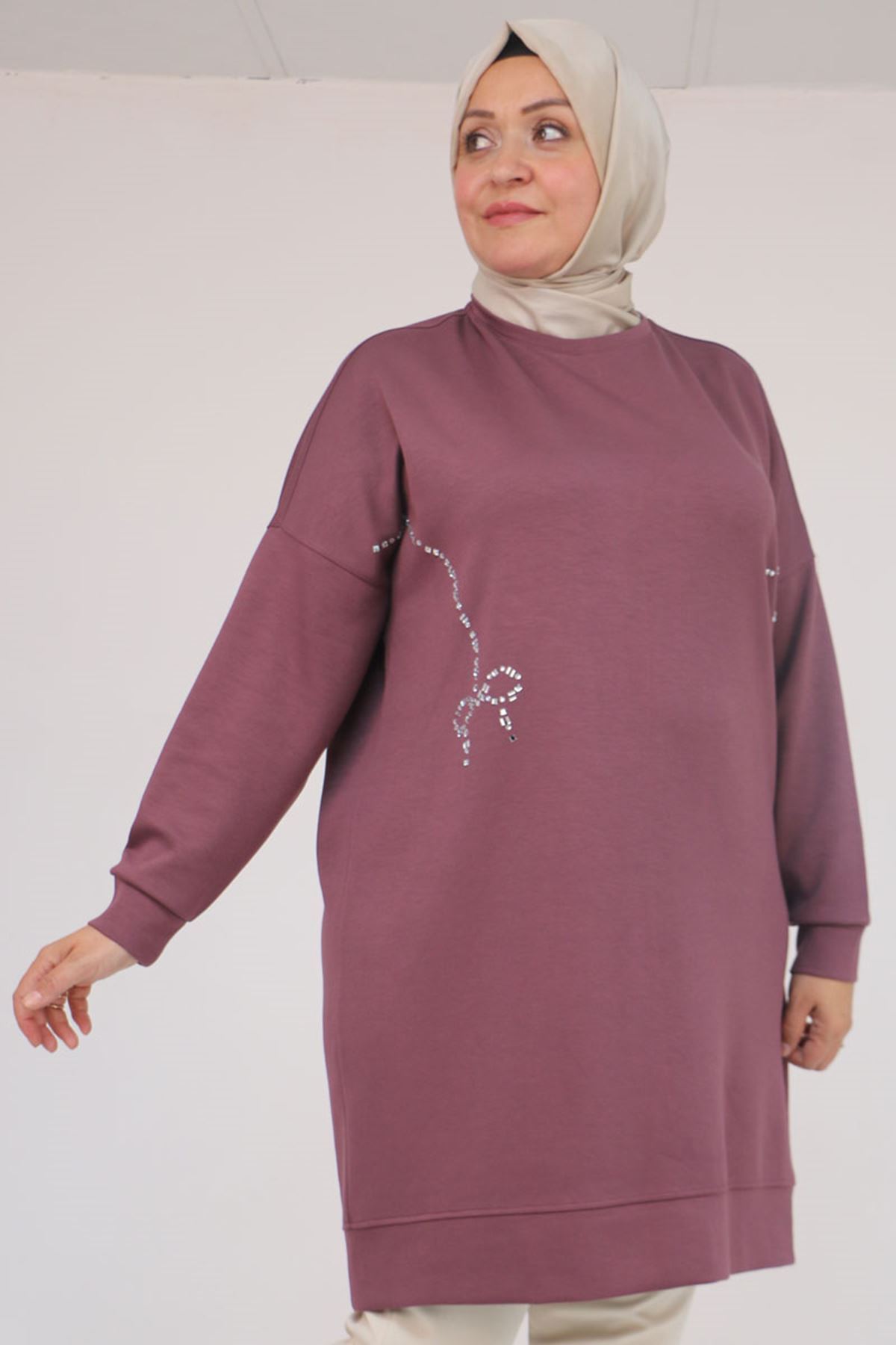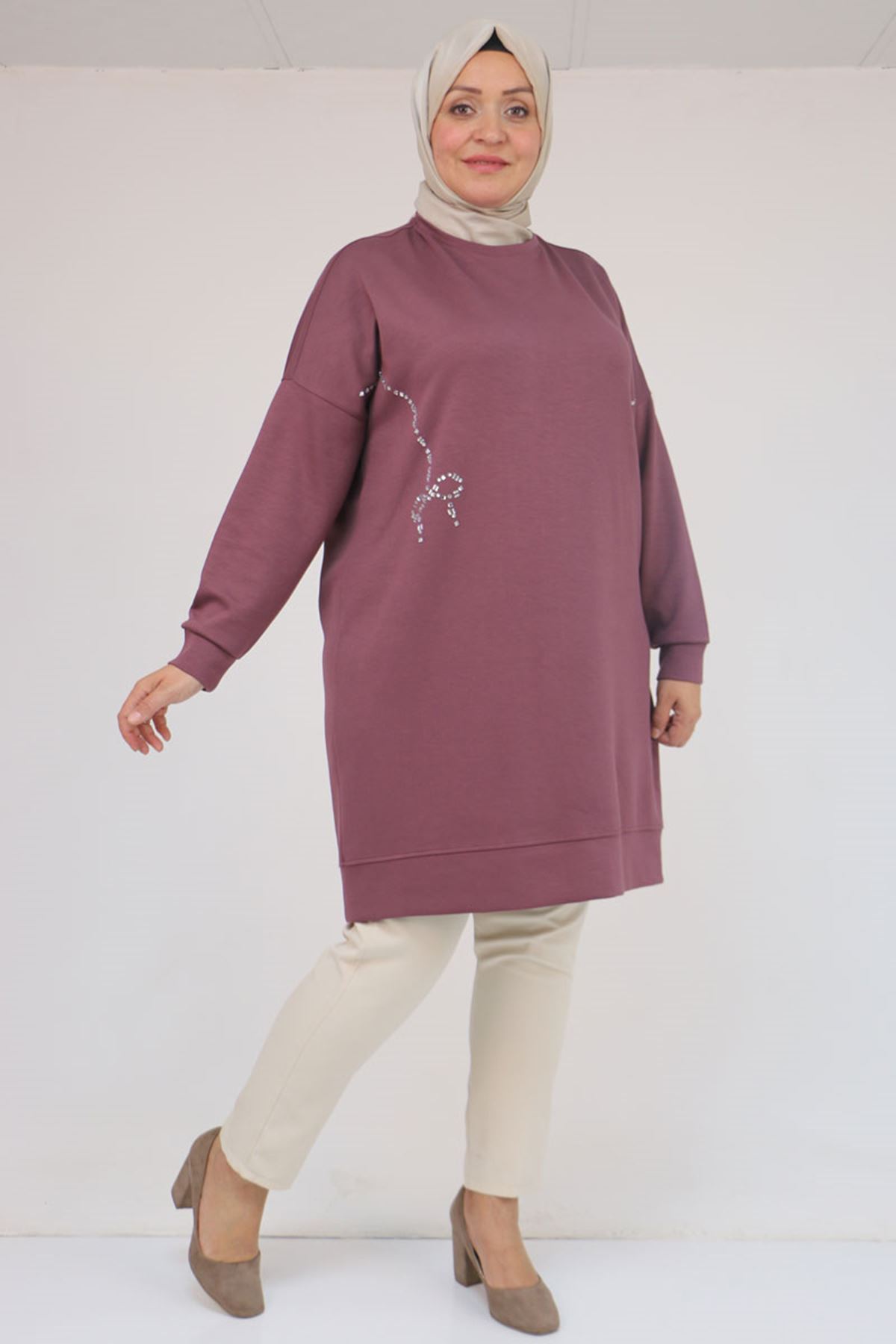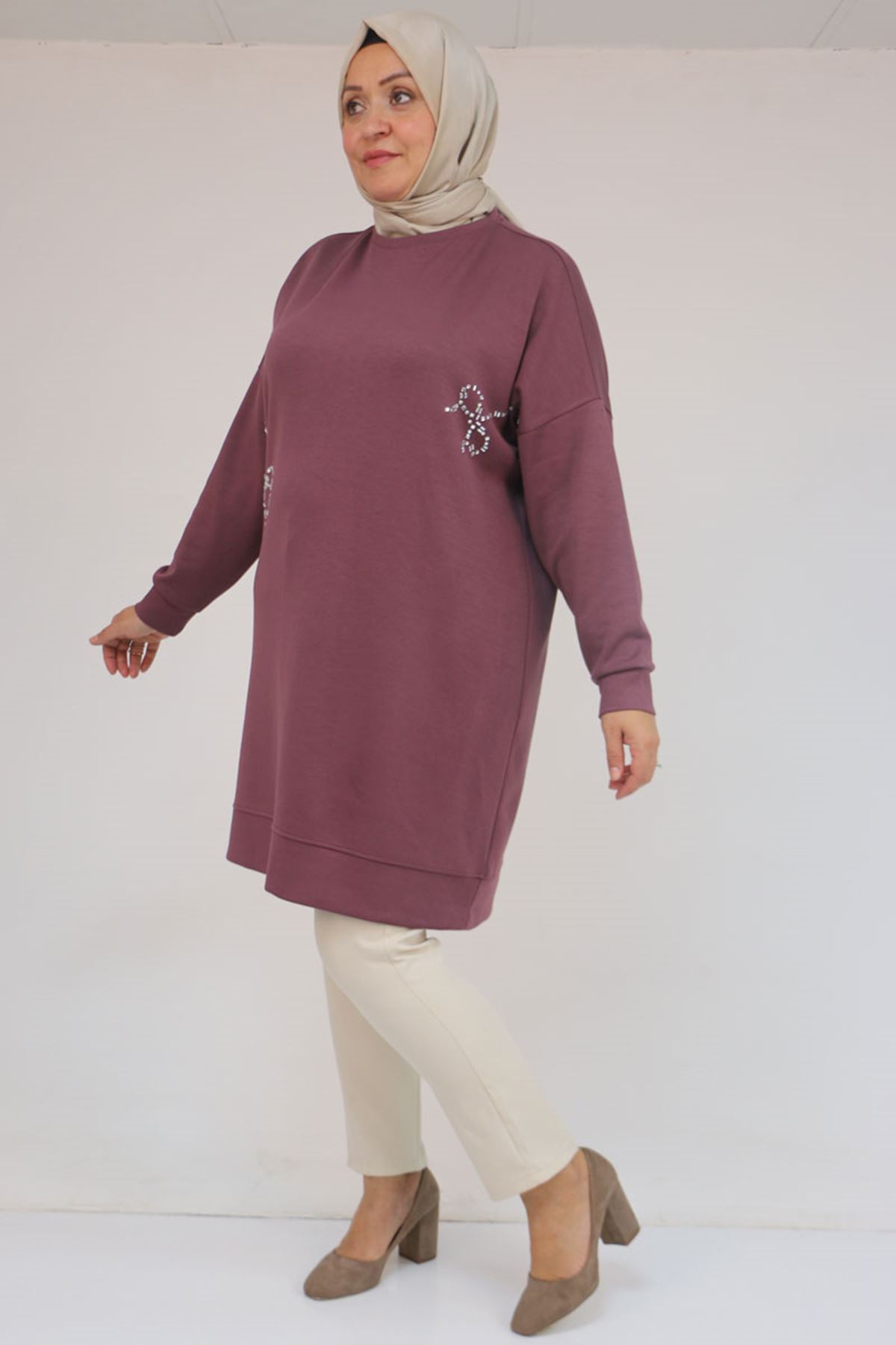 58165 Büyük Beden Taş Baskı Detaylı Modal Tunik - Gül Kurusu