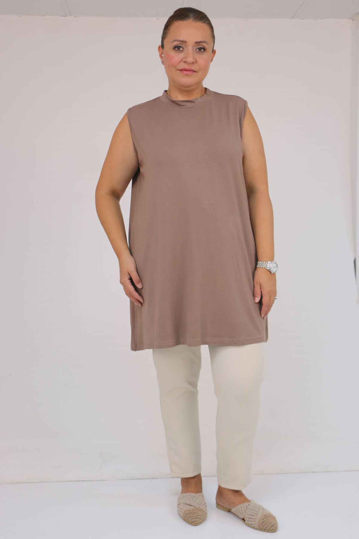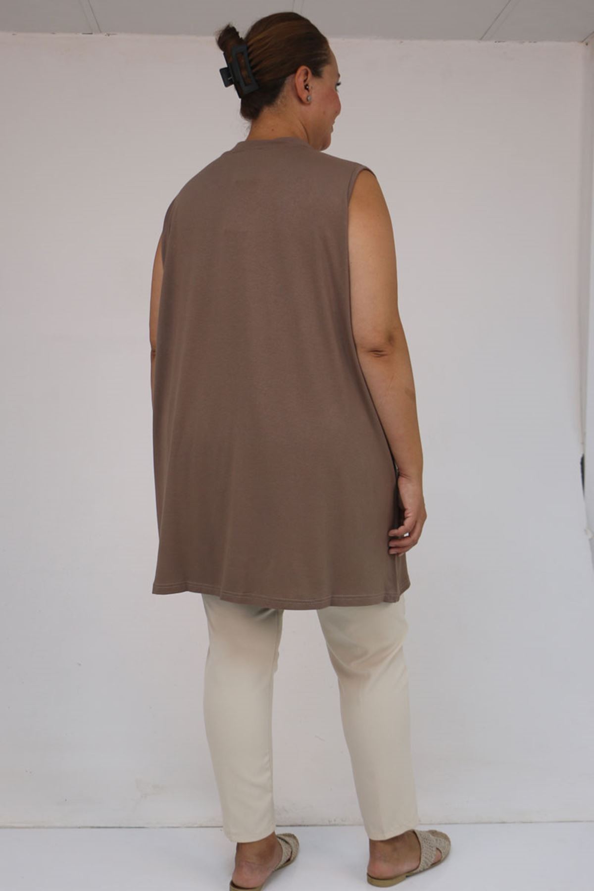 58501 Büyük Beden Hakim Yakalı Penye İçlik - Vizon