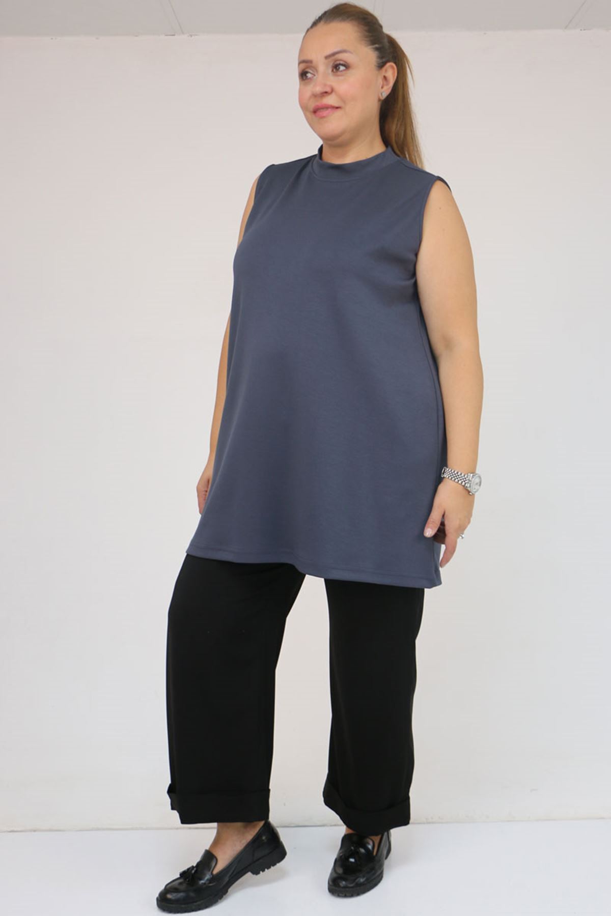 58509 Büyük Beden Uzun Modal İçlik - Antrasit