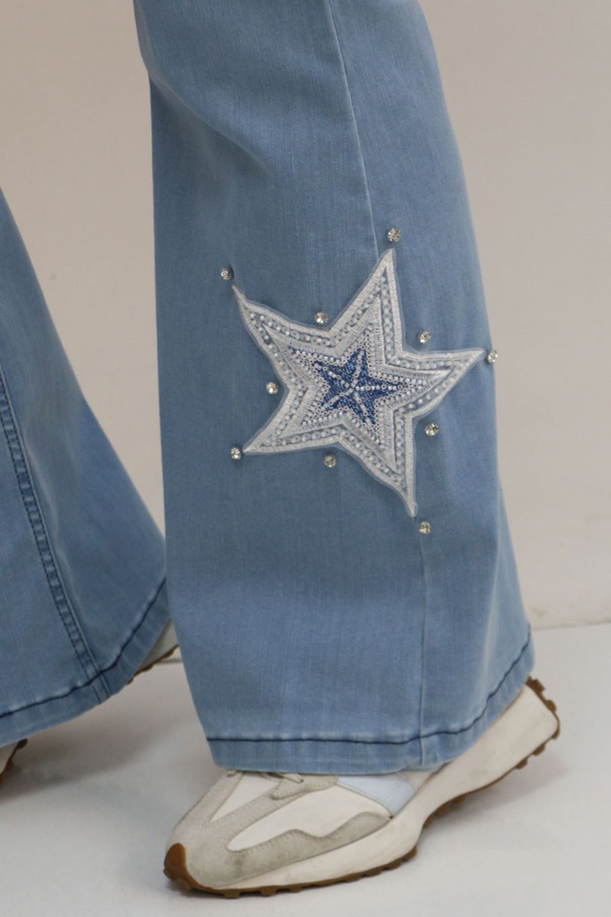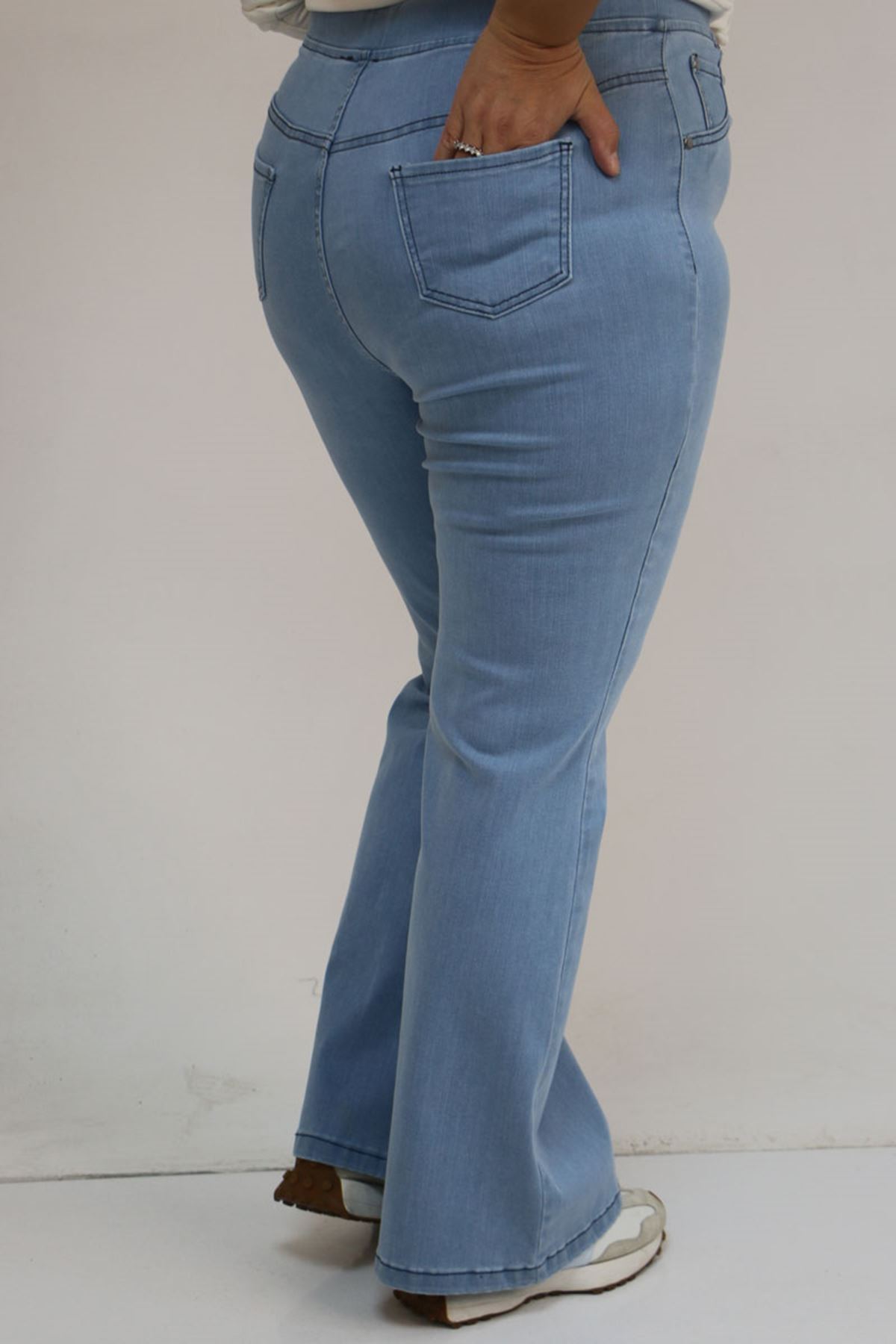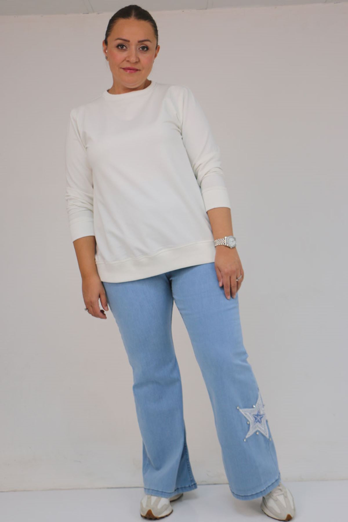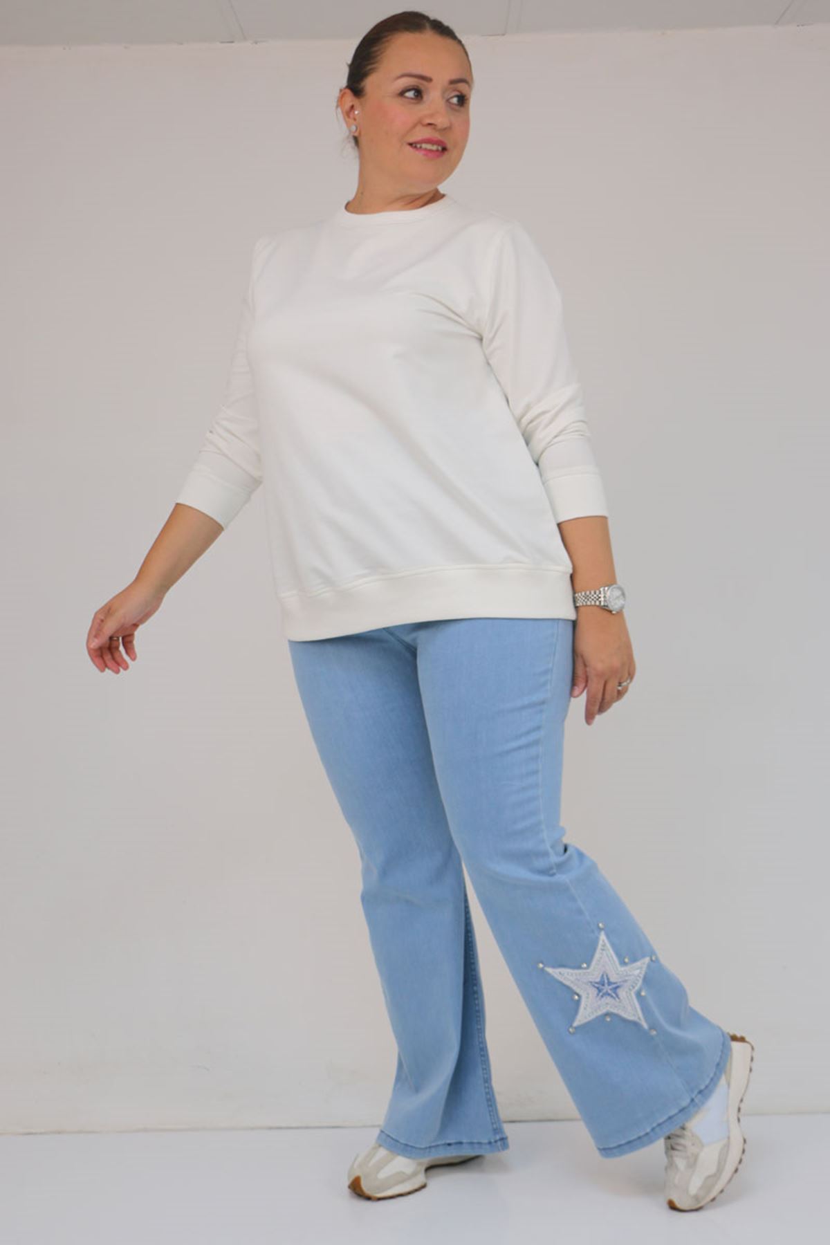 59033 Büyük Beden İspanyol Paça Aksesuar Detaylı Kot Pantolon - Buz Mavi