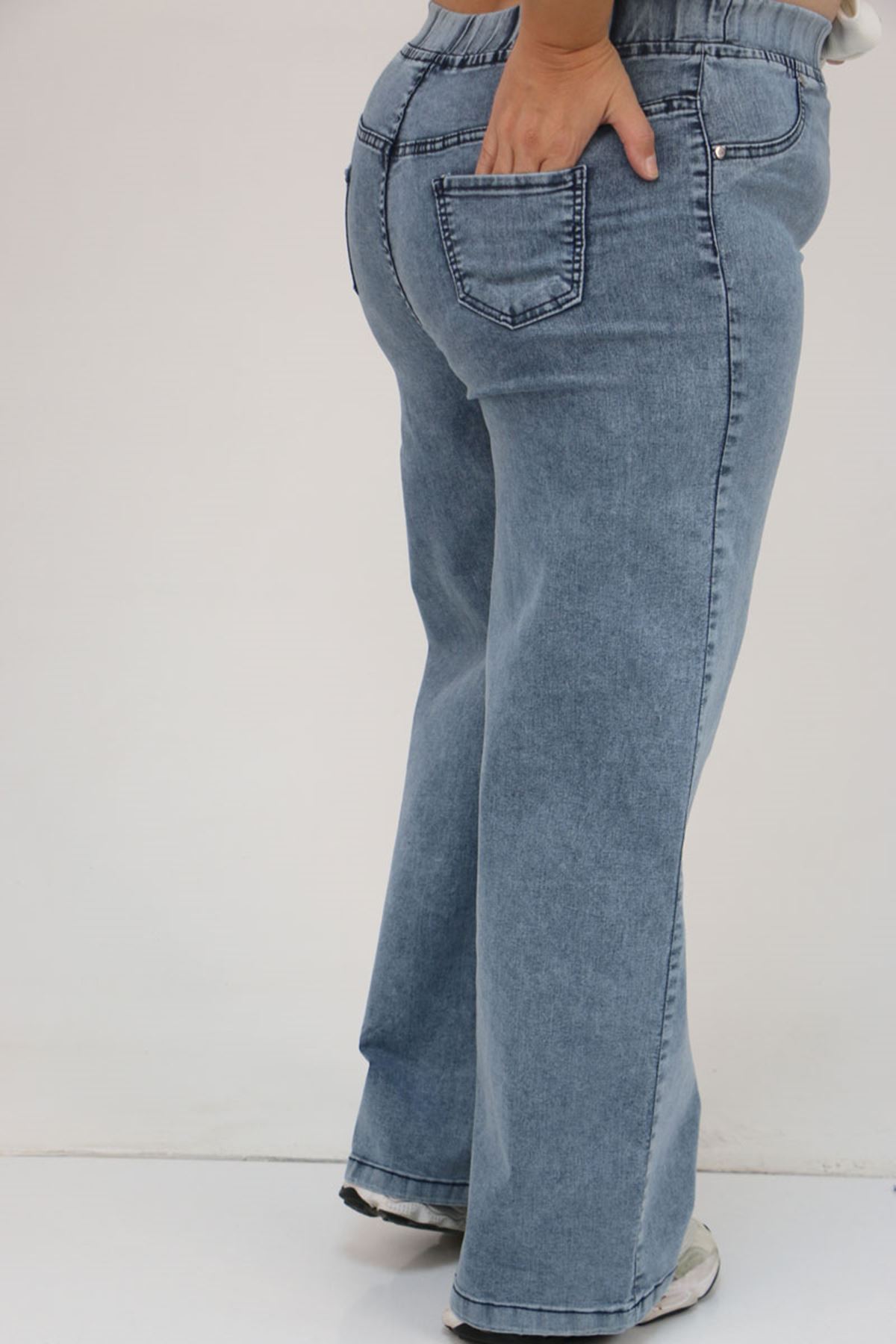 59035 Büyük Beden Kelebek Taş Detaylı Bol Paça Kot Pantolon - Kar Yıkama Mavi