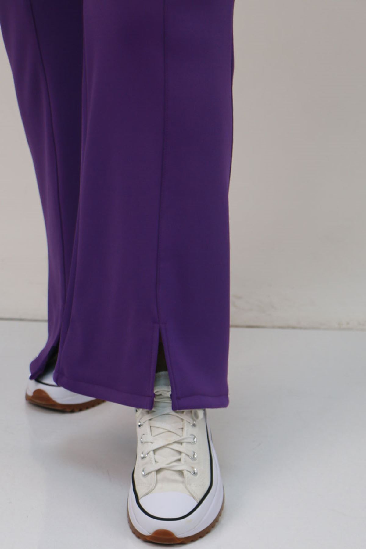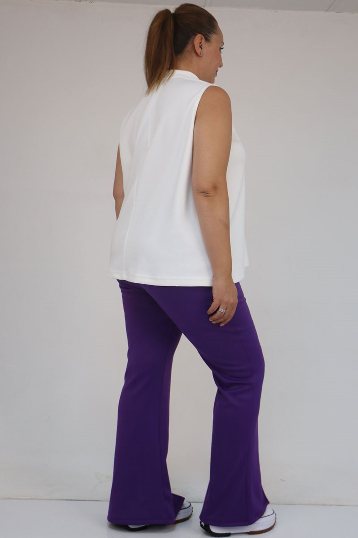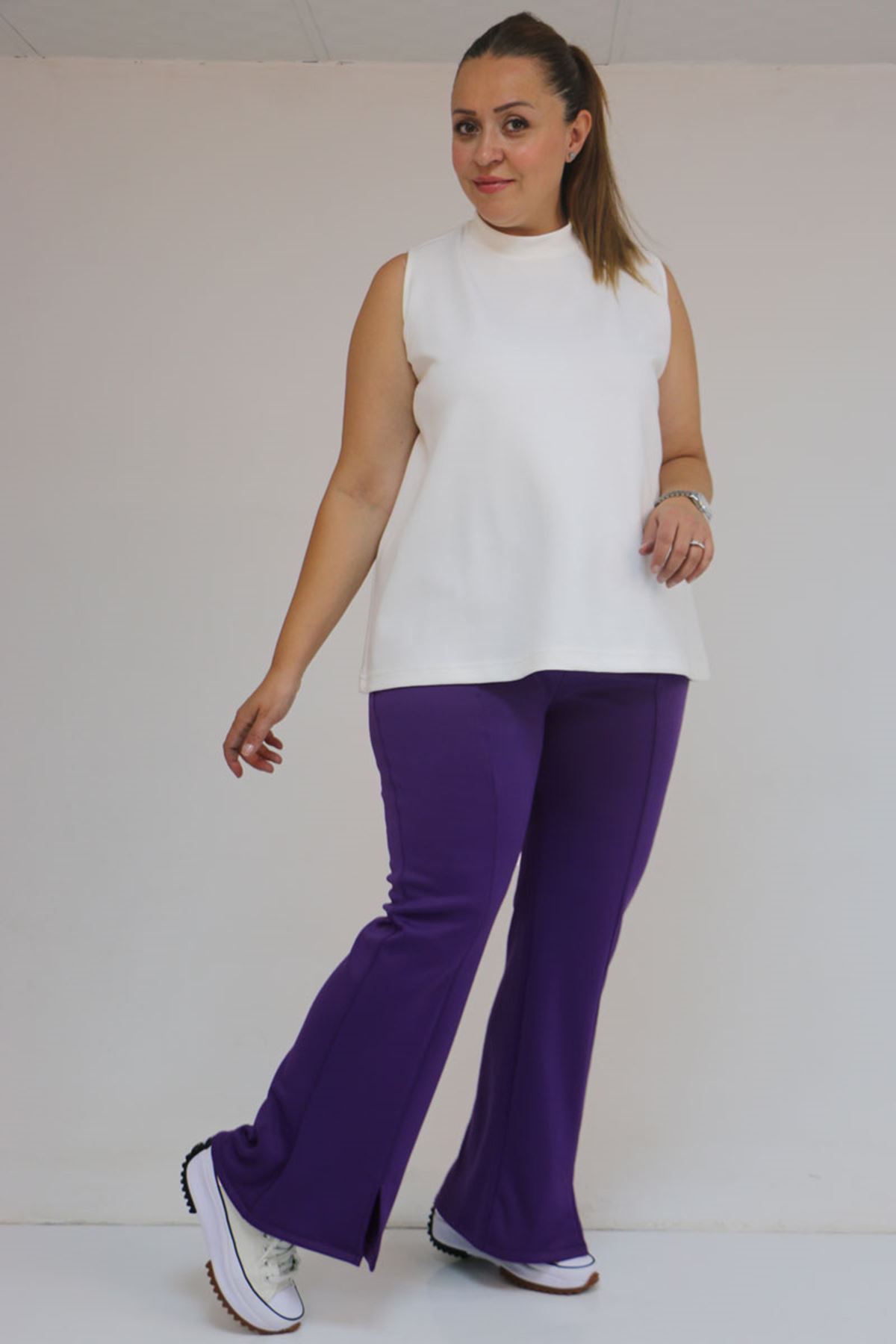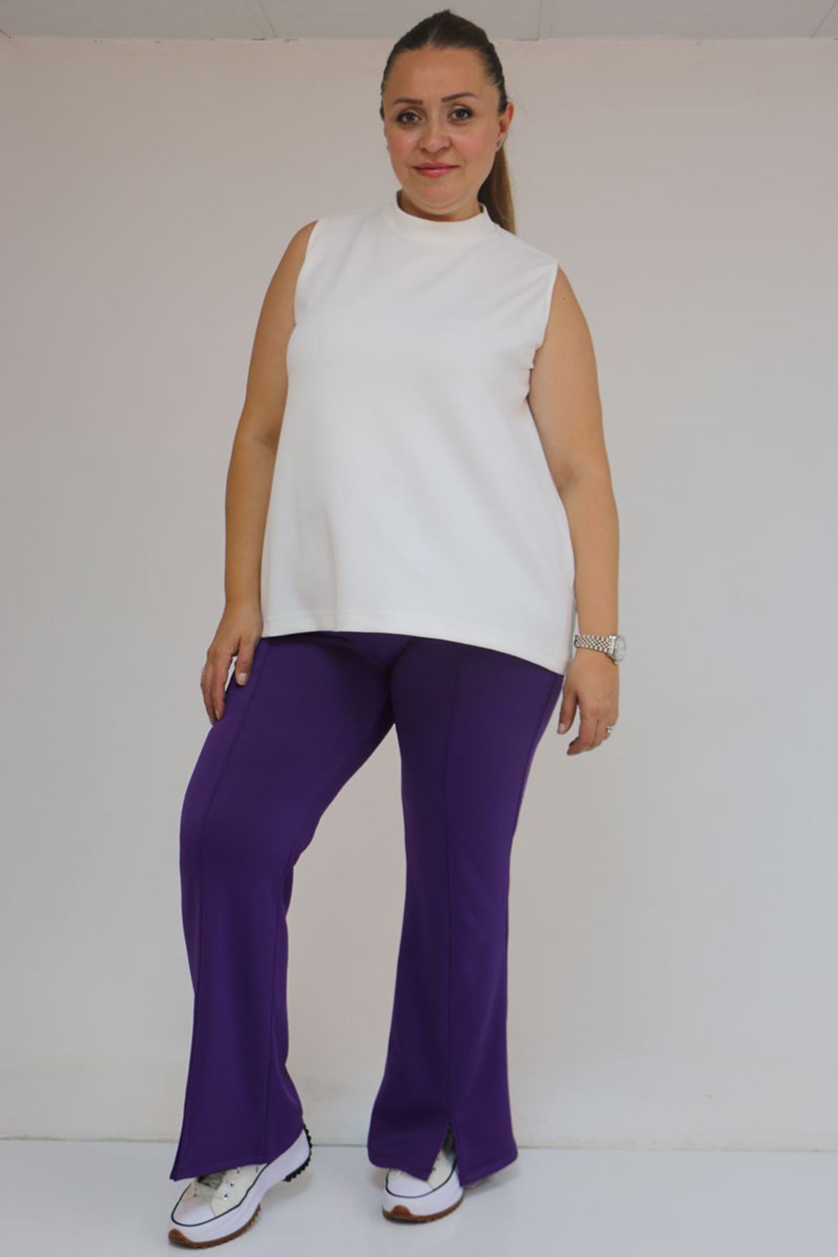 59506 Büyük Beden Paçası Yırtmaçlı İspanyol Paça Tayt Pantolon - Mor