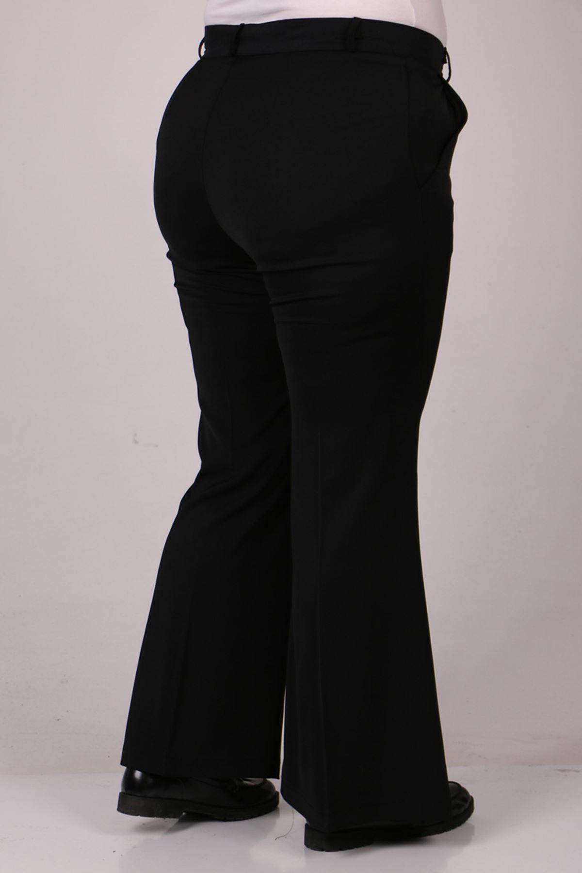 29031 Büyük Beden İspanyol Paça Pantolon - Siyah