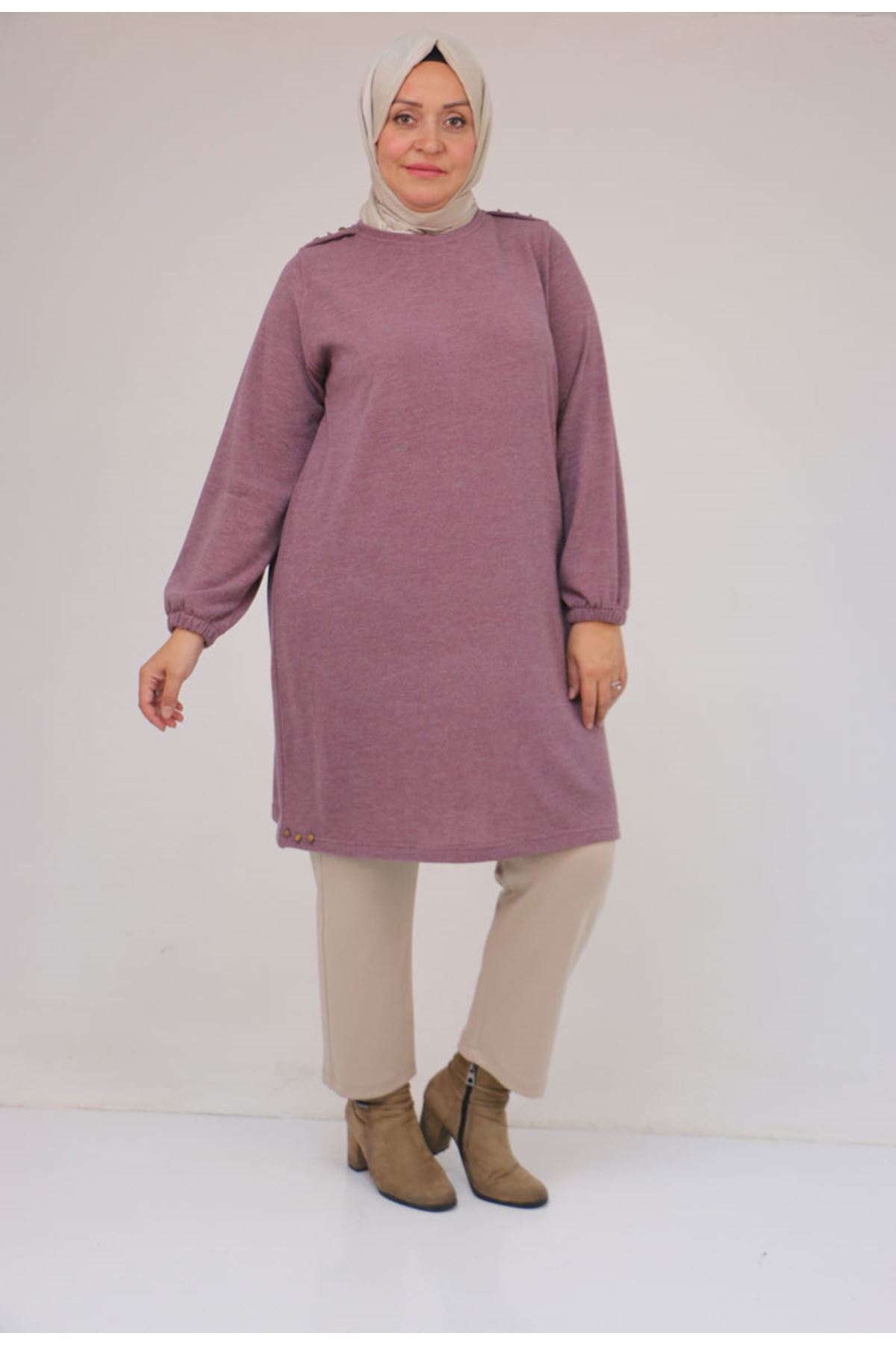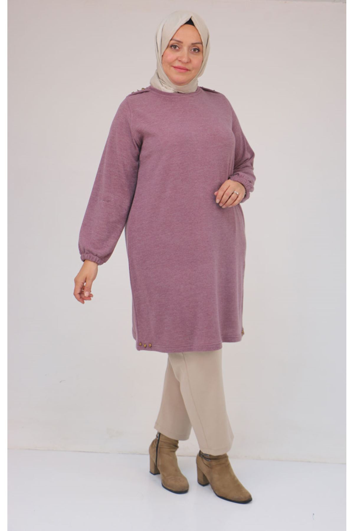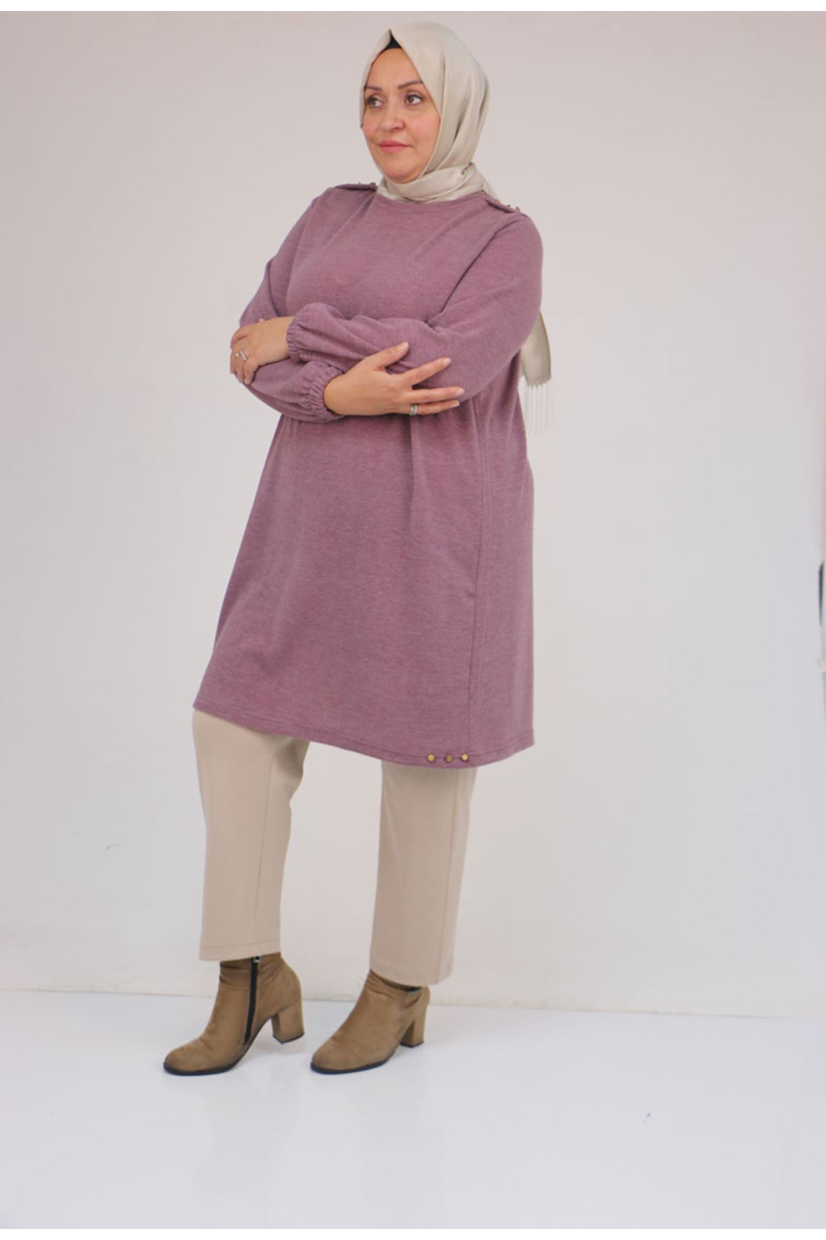 58155 Büyük Beden Kolları Lastikli Perçinli Mir Tunik - Gül Kurusu