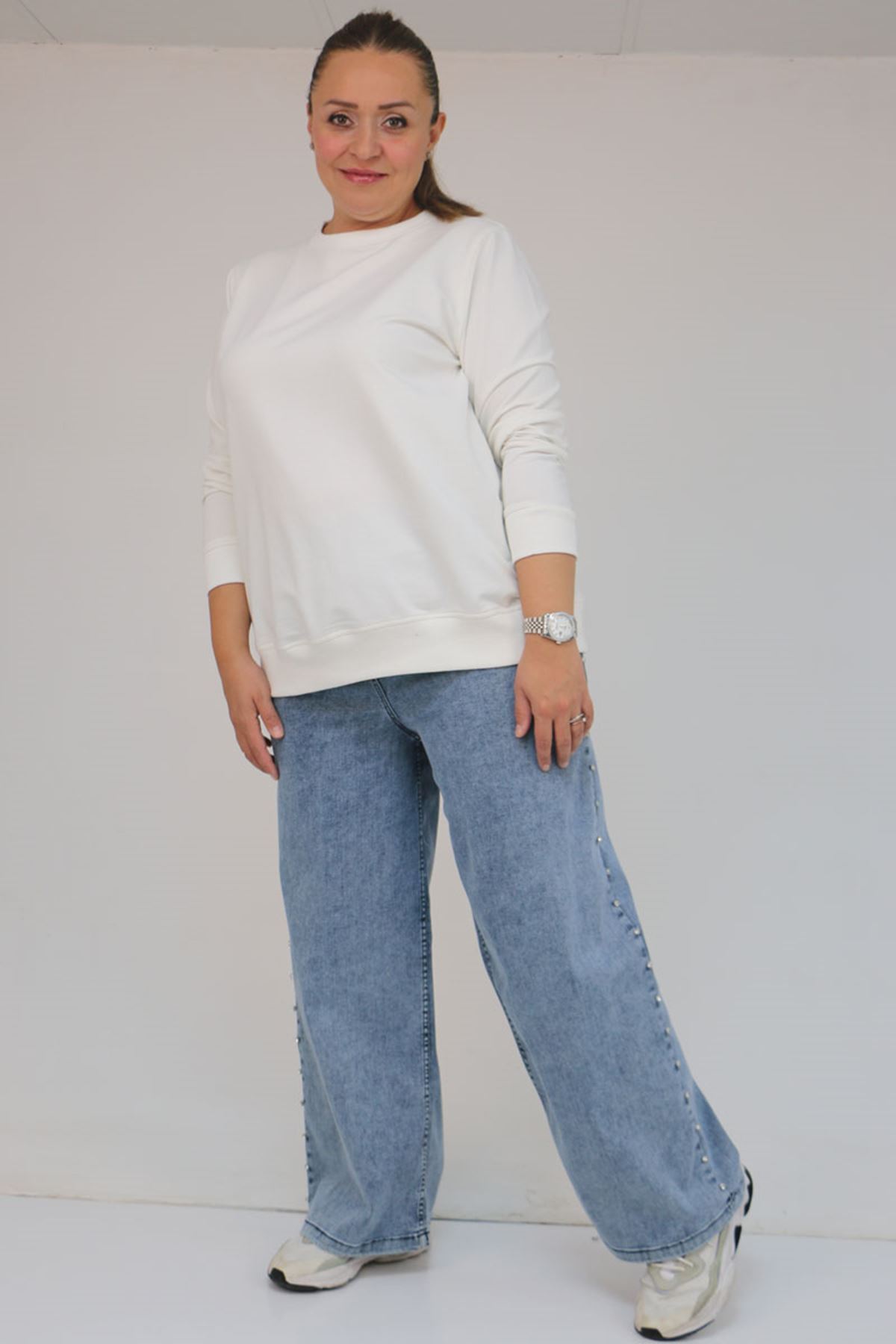 59034 Büyük Beden Bolpaça Taş Detaylı Kot Pantolon - Mavi